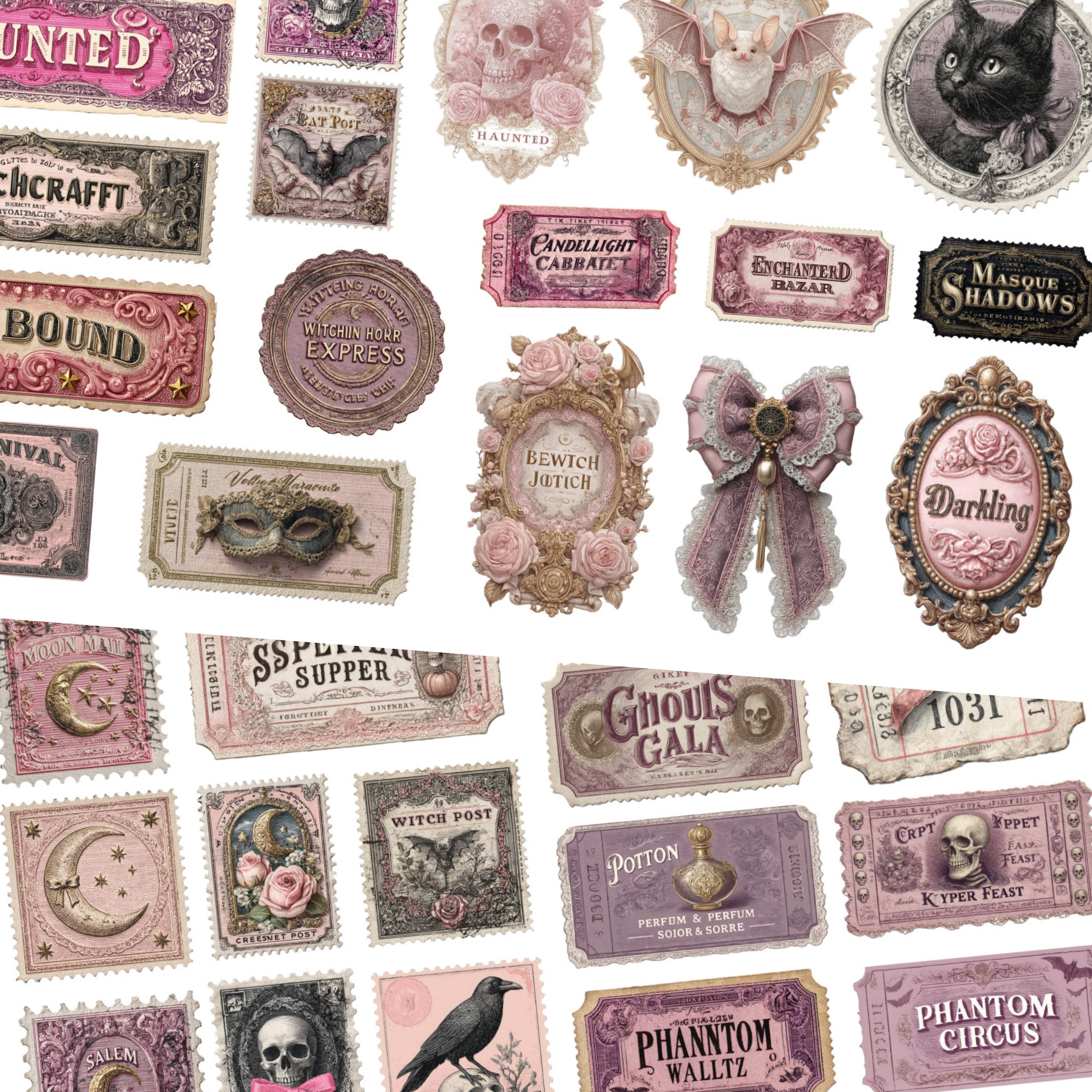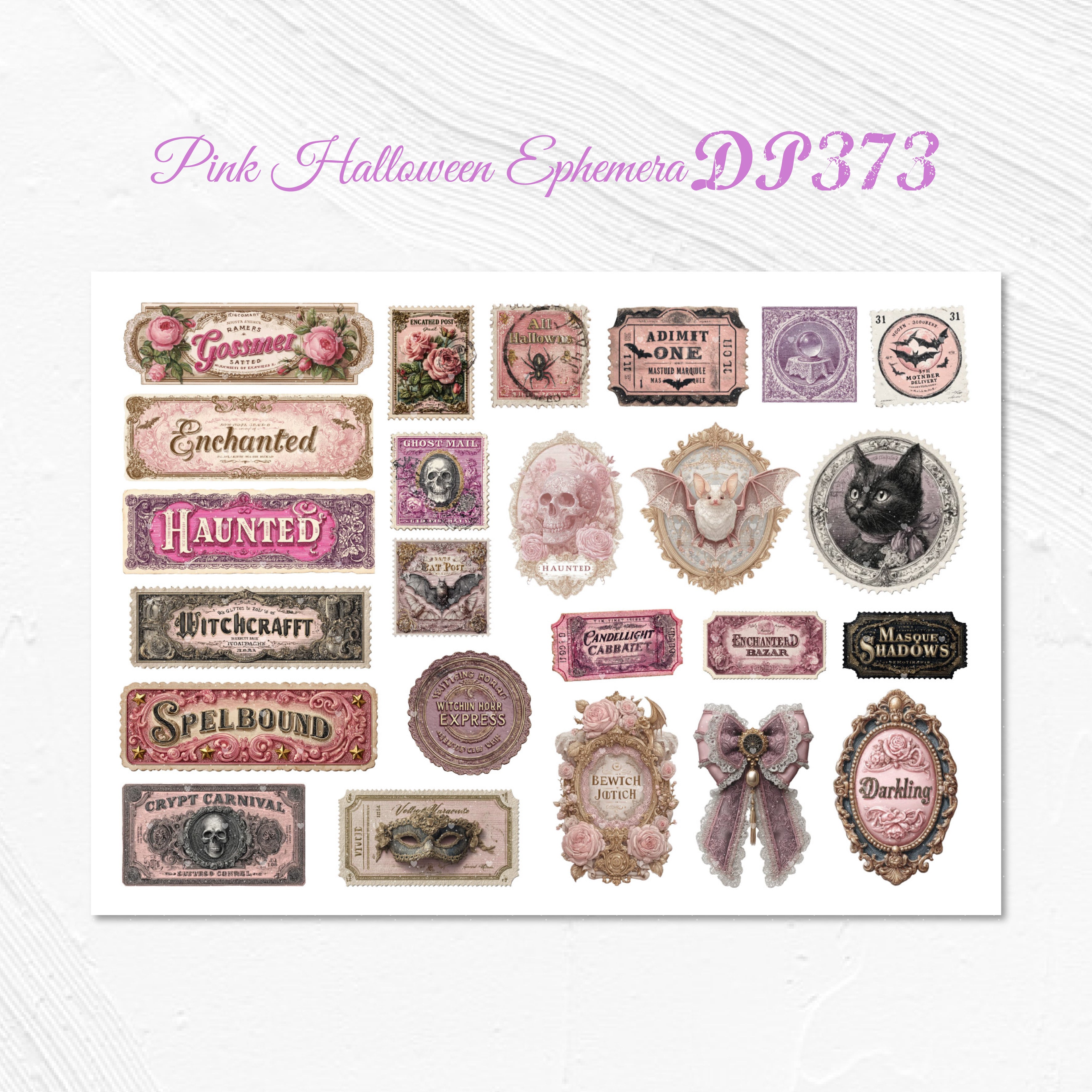 【DP373】デザインペーパー ピンクハロウィン ラベル コラージュシート
