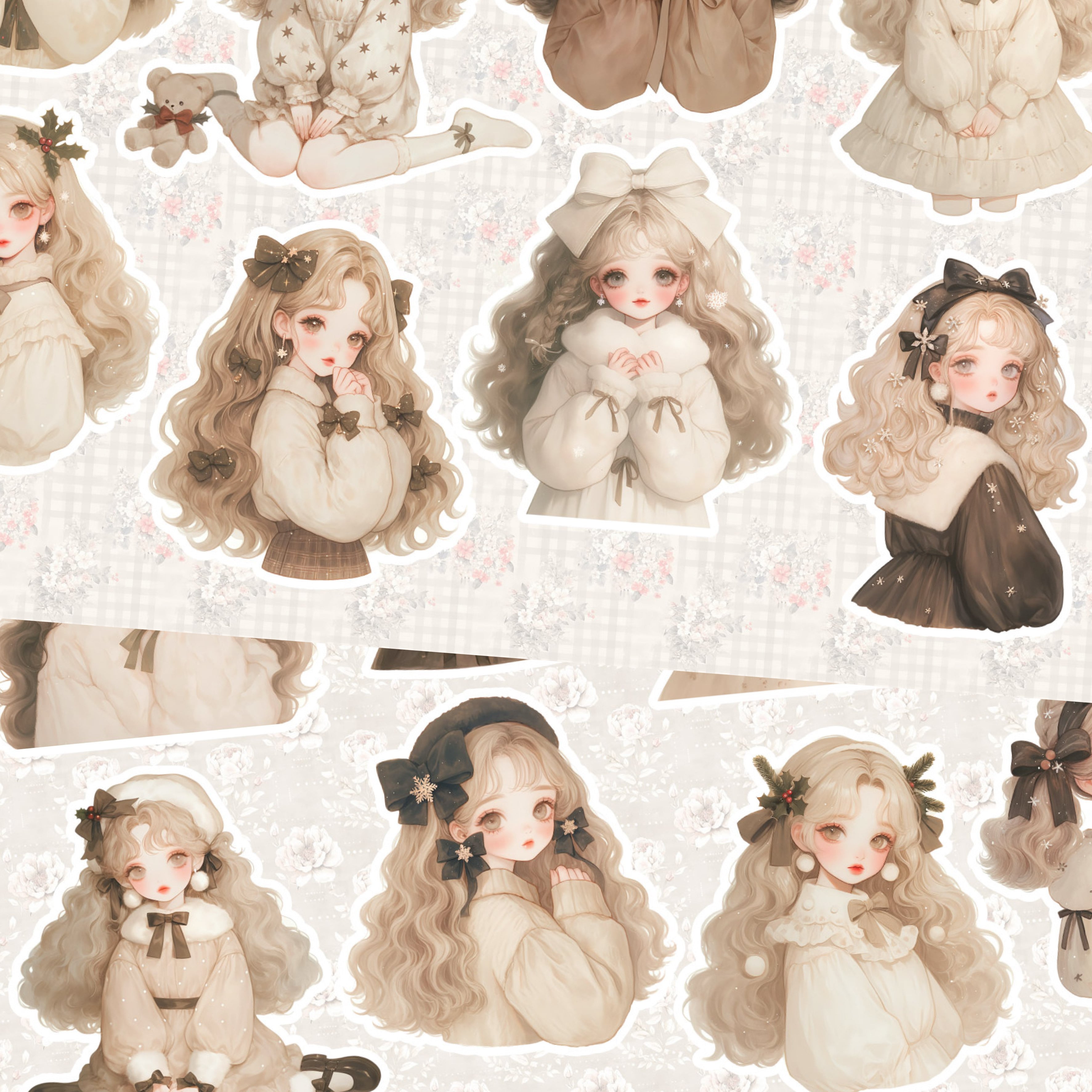 ベージュ クリスマス ガールのかわいいコラージュシートです♡