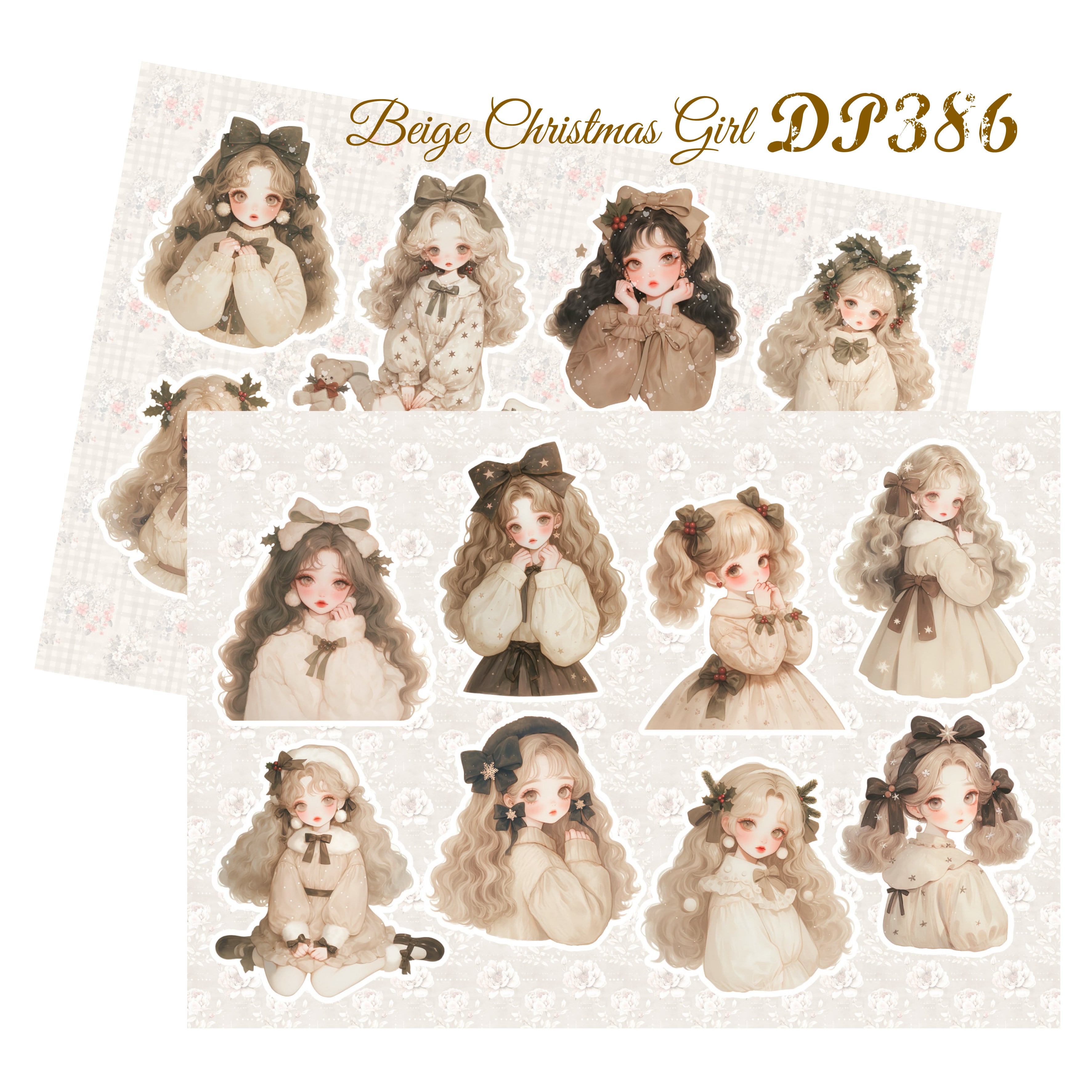 【DP386】デザインペーパー ベージュ クリスマス ガールコラージュシート