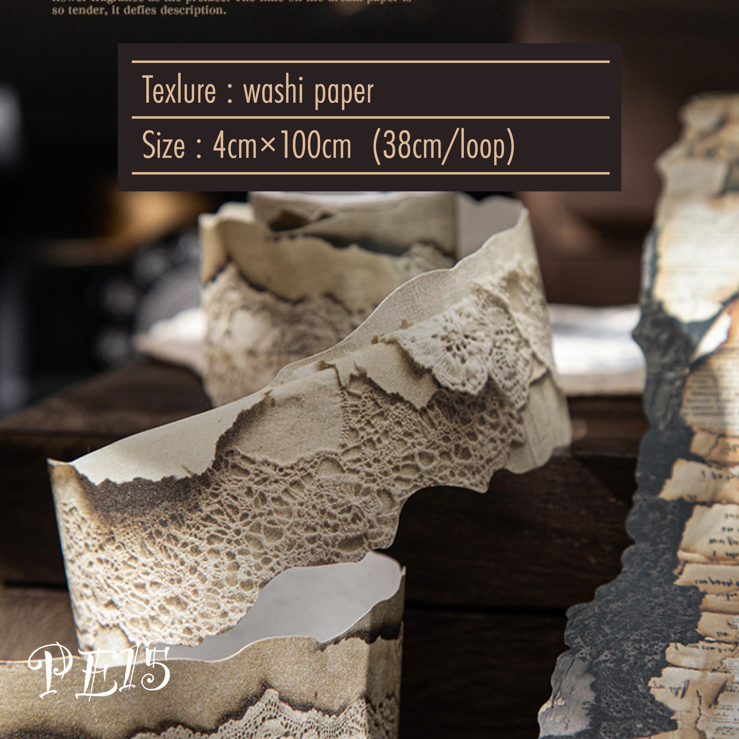 【PE15】コラージュ素材 ビンテージ アイボリーレース マスキングテープ(4x100cm)
