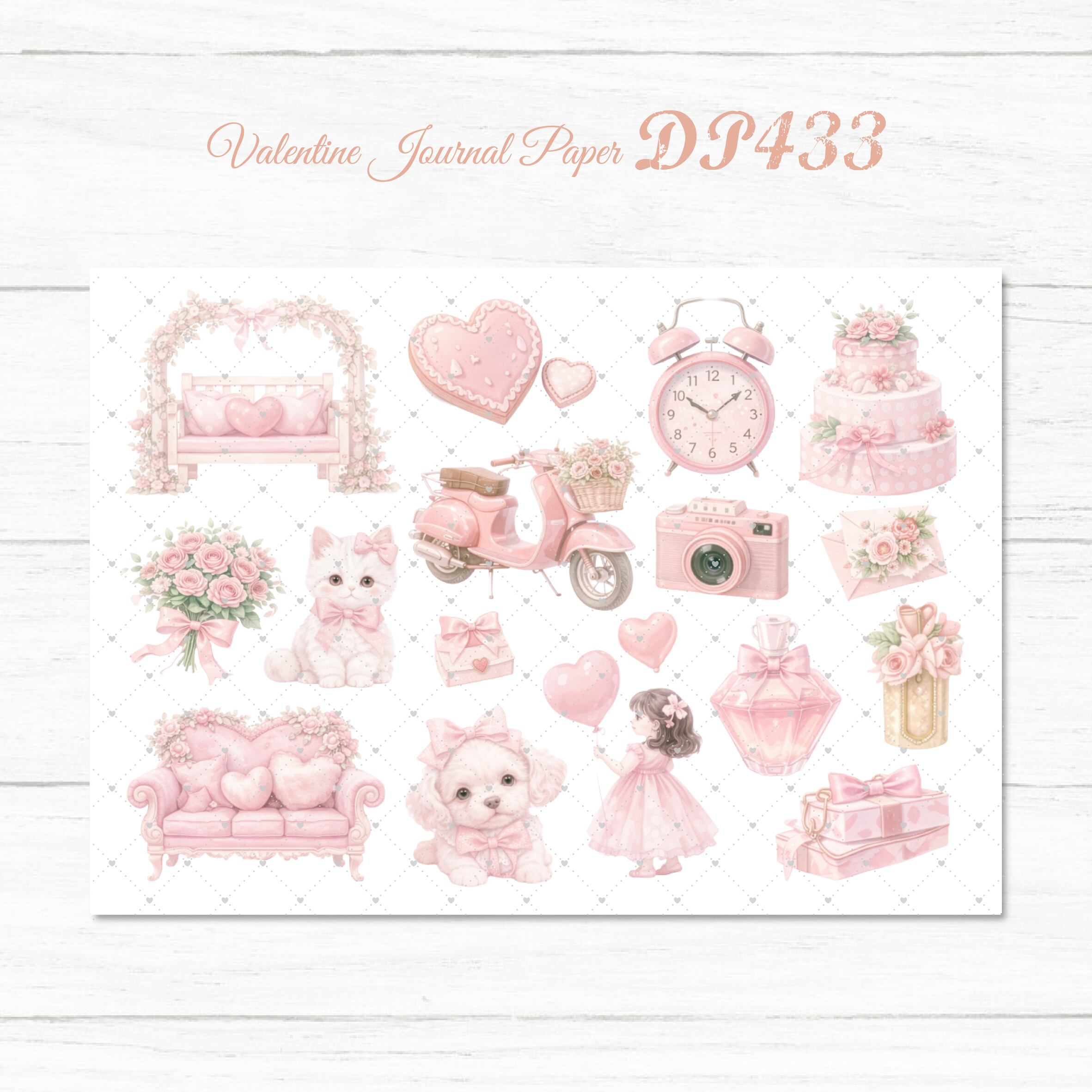 【DP433】デザインペーパー ピンク バレンタイン コラージュシート