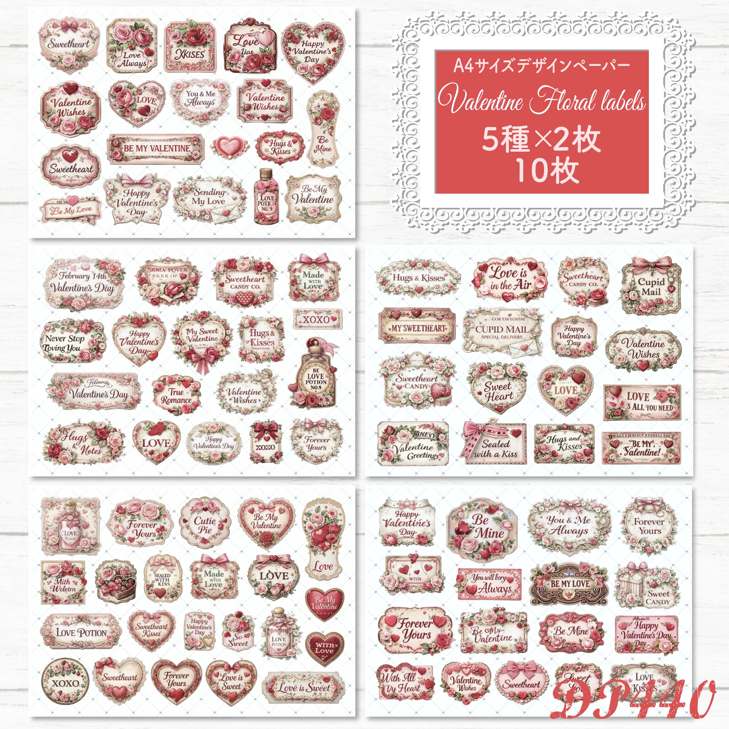 【DP440】デザインペーパー バレンタイン フローラルラベル コラージュシート