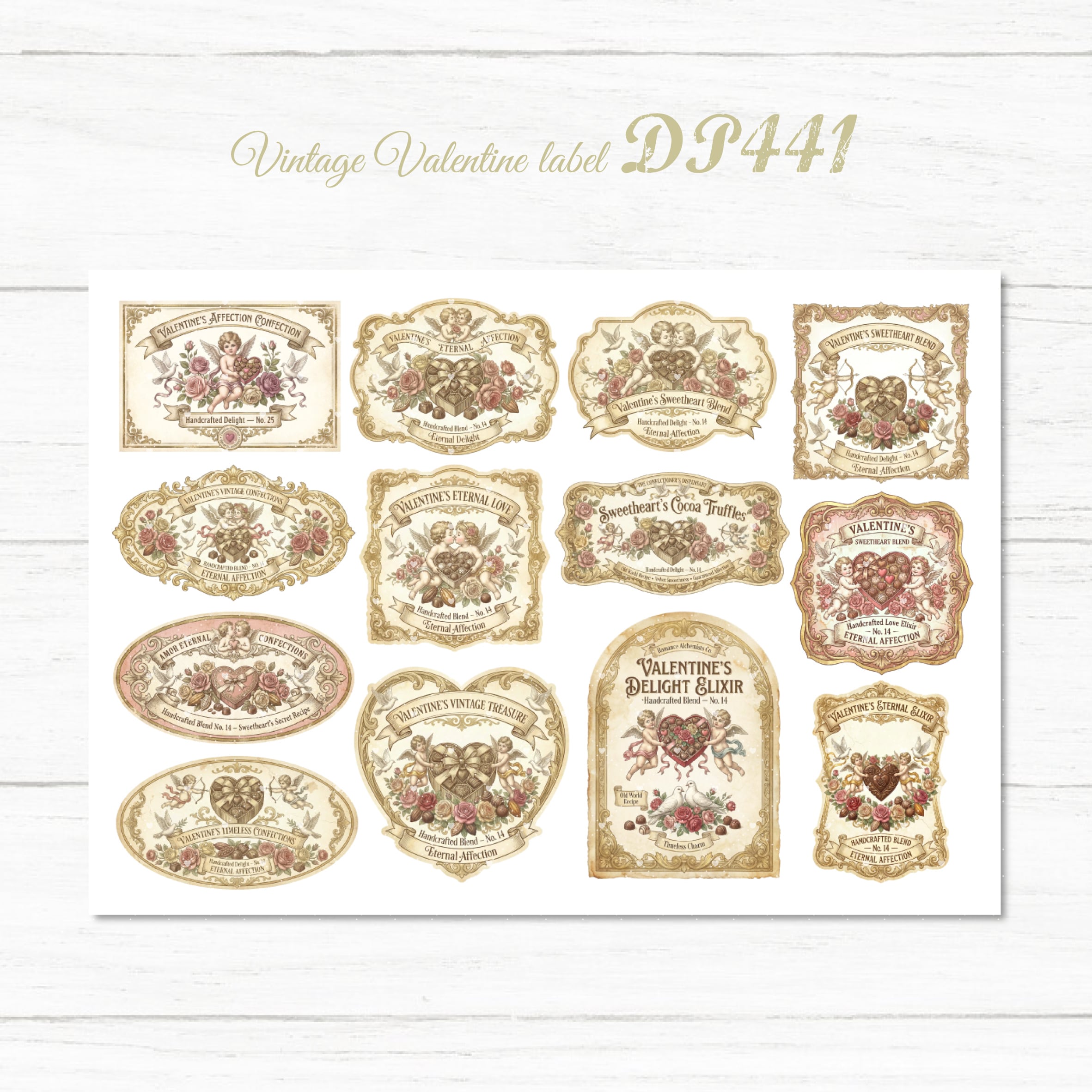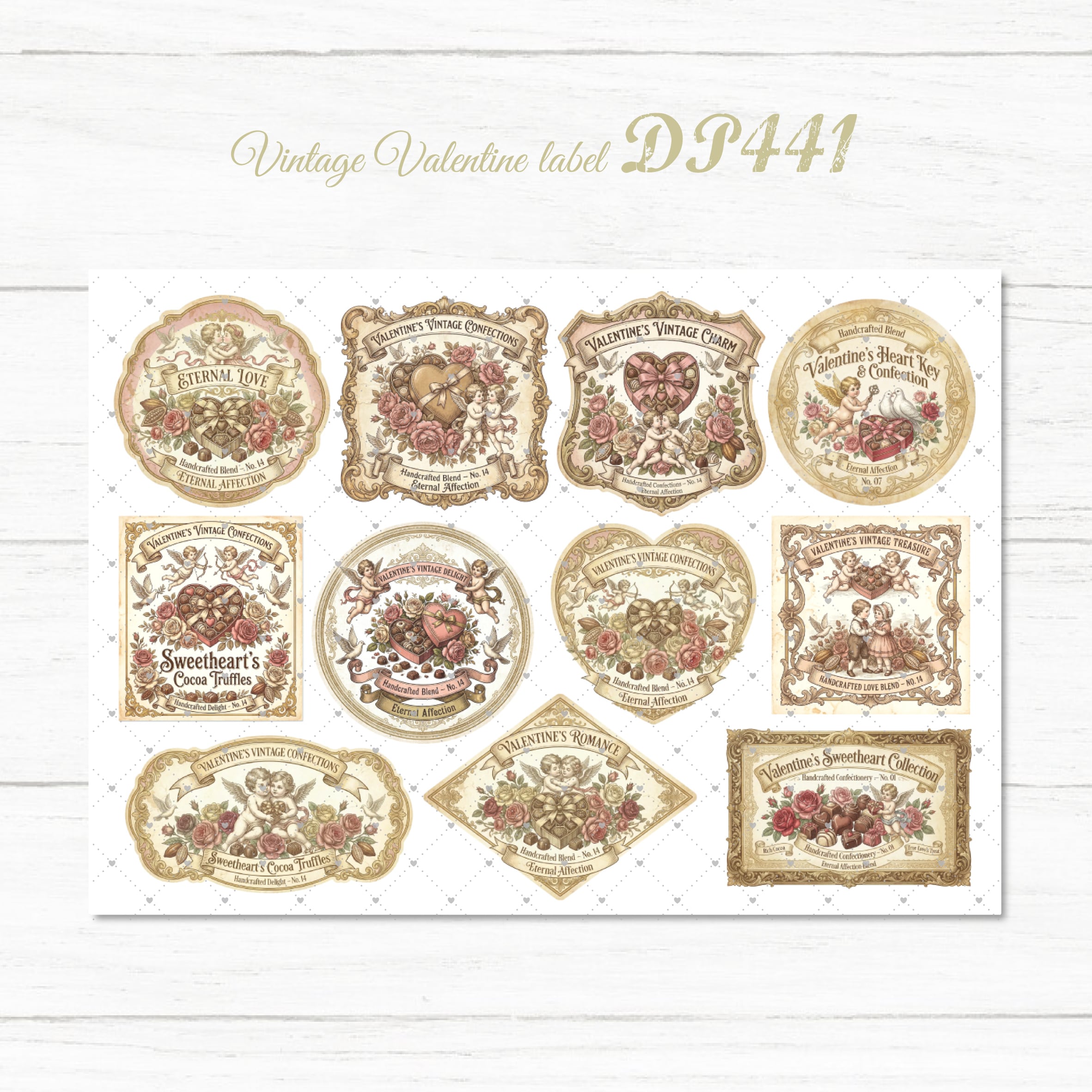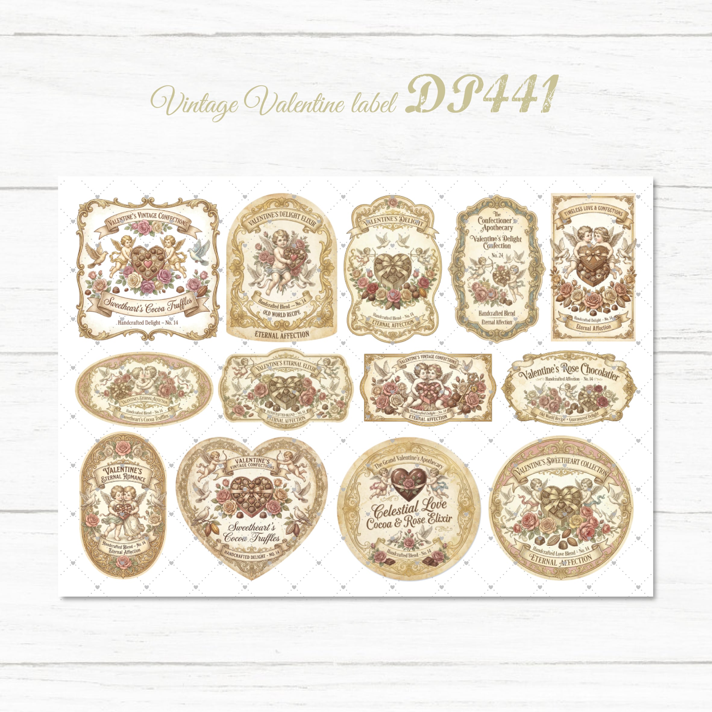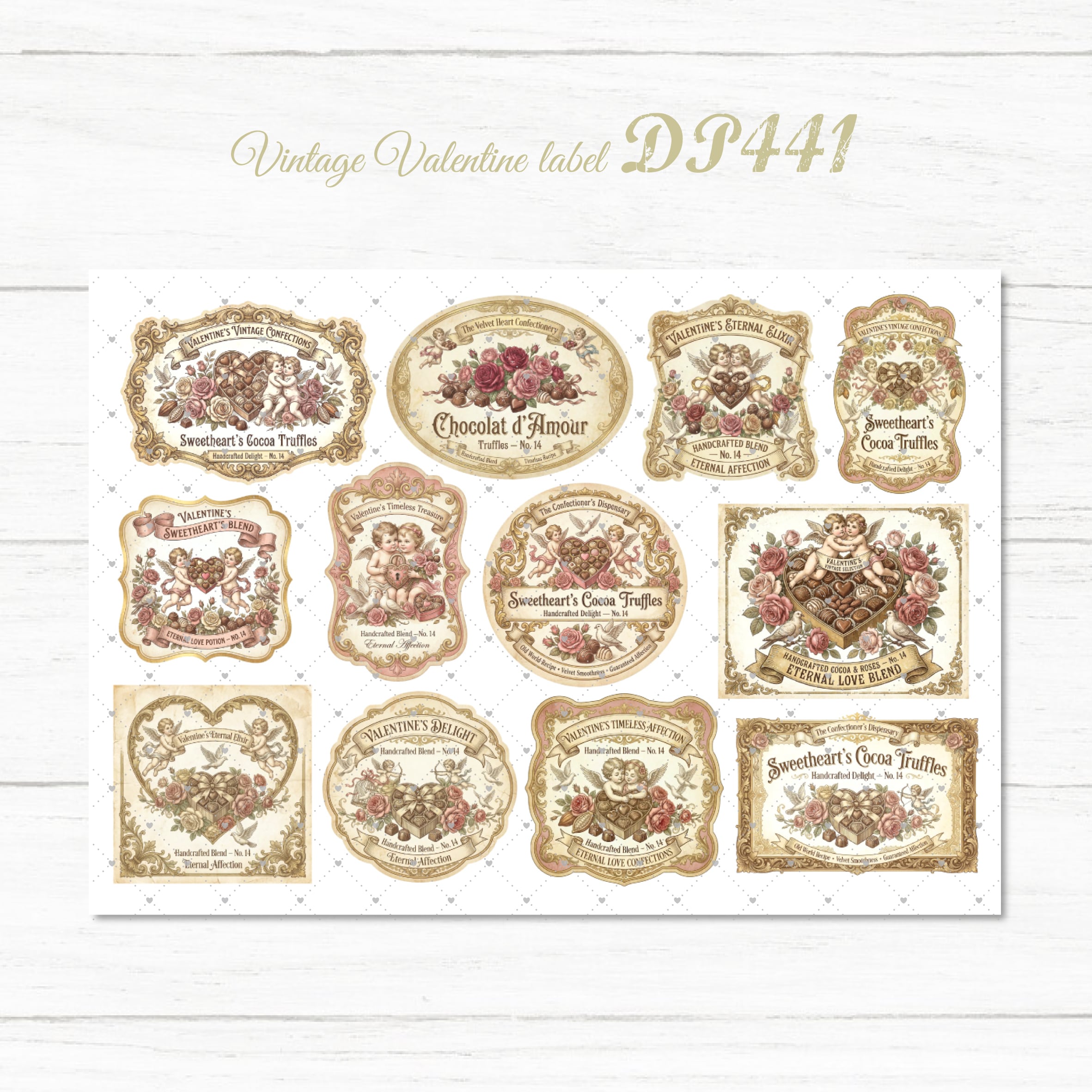 【DP441】デザインペーパー バレンタイン ビンテージラベル コラージュシート