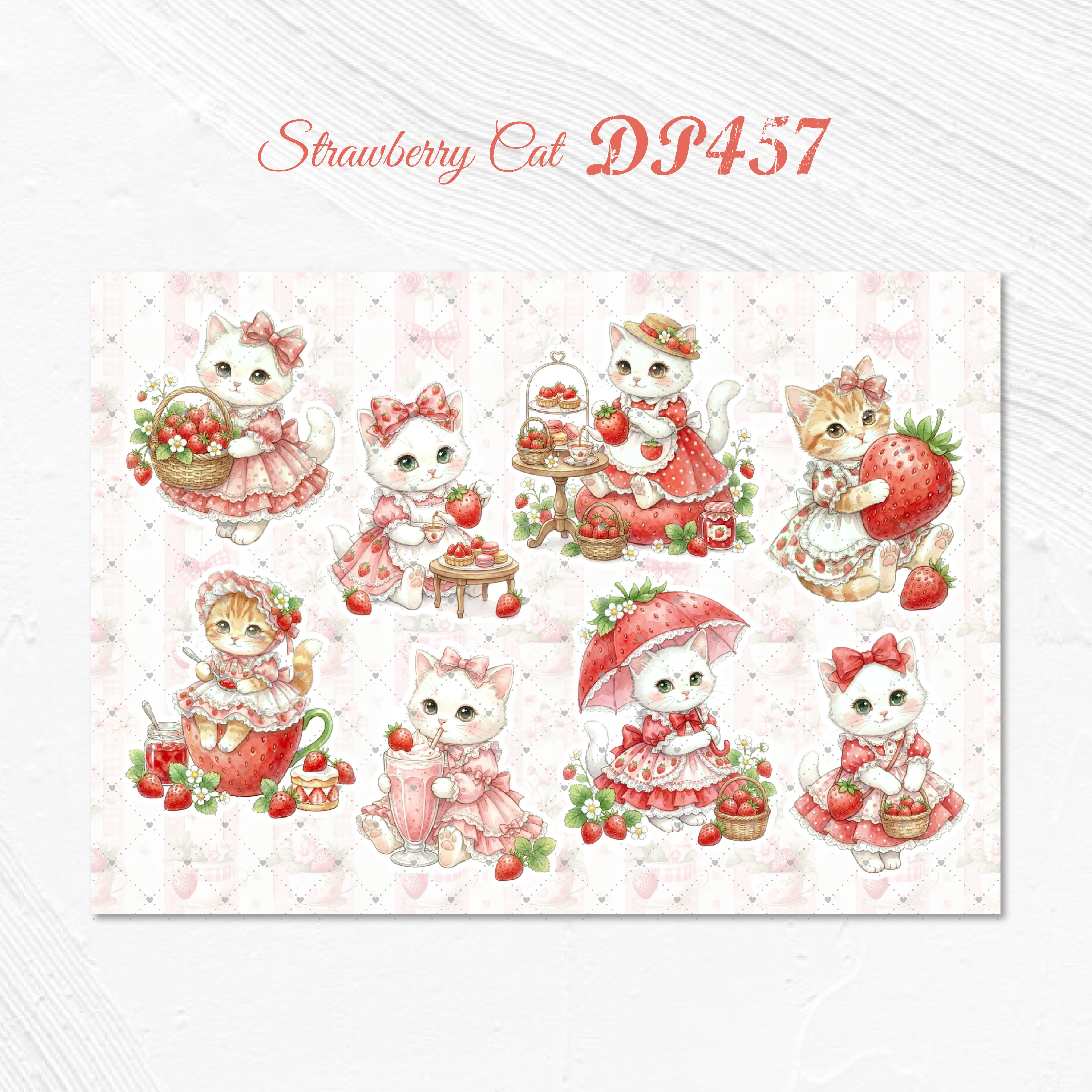 【DP457】デザインペーパー ストロベリー キャット コラージュシート
