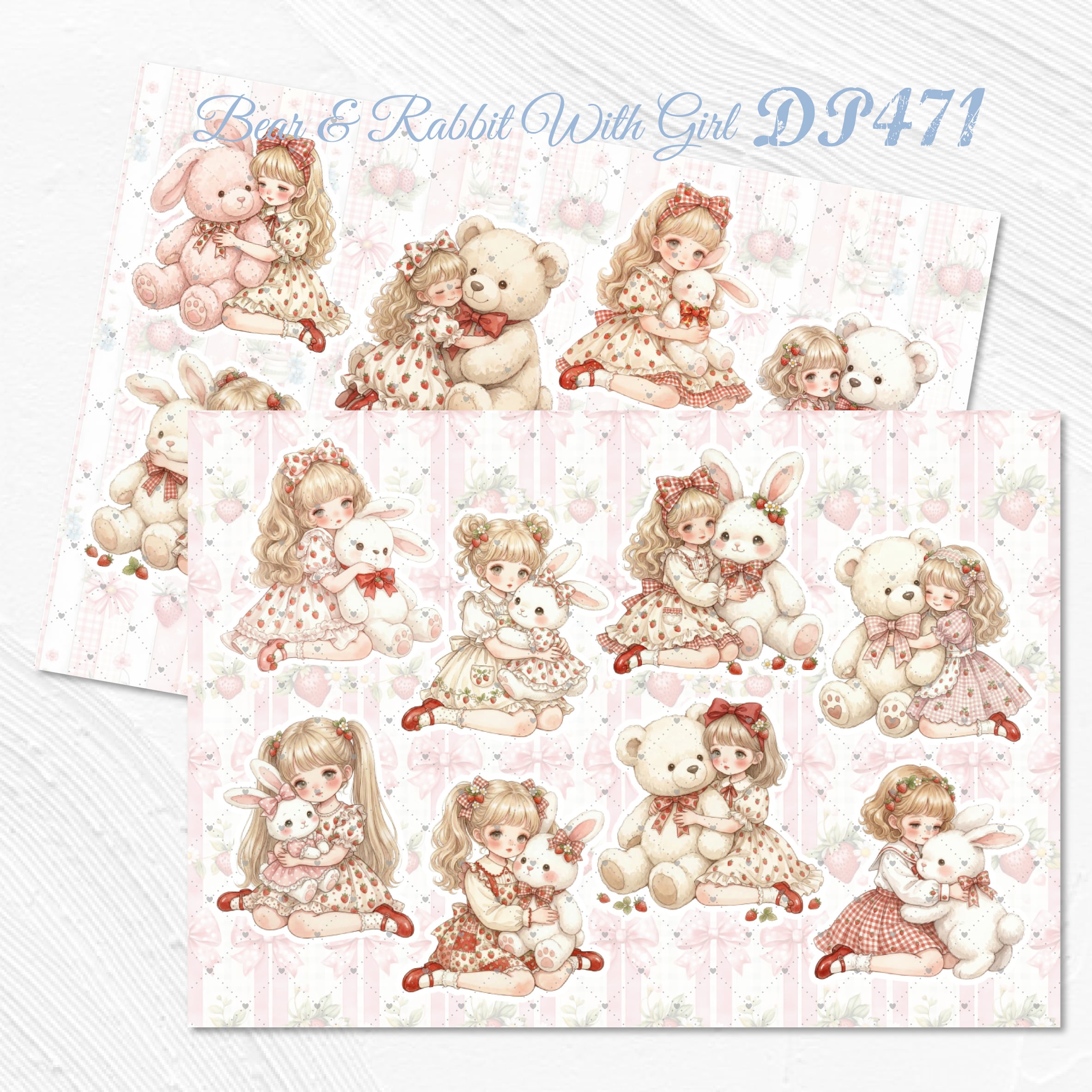 【DP471】デザインペーパー ベア&ラビットいちごガール コラージュシート