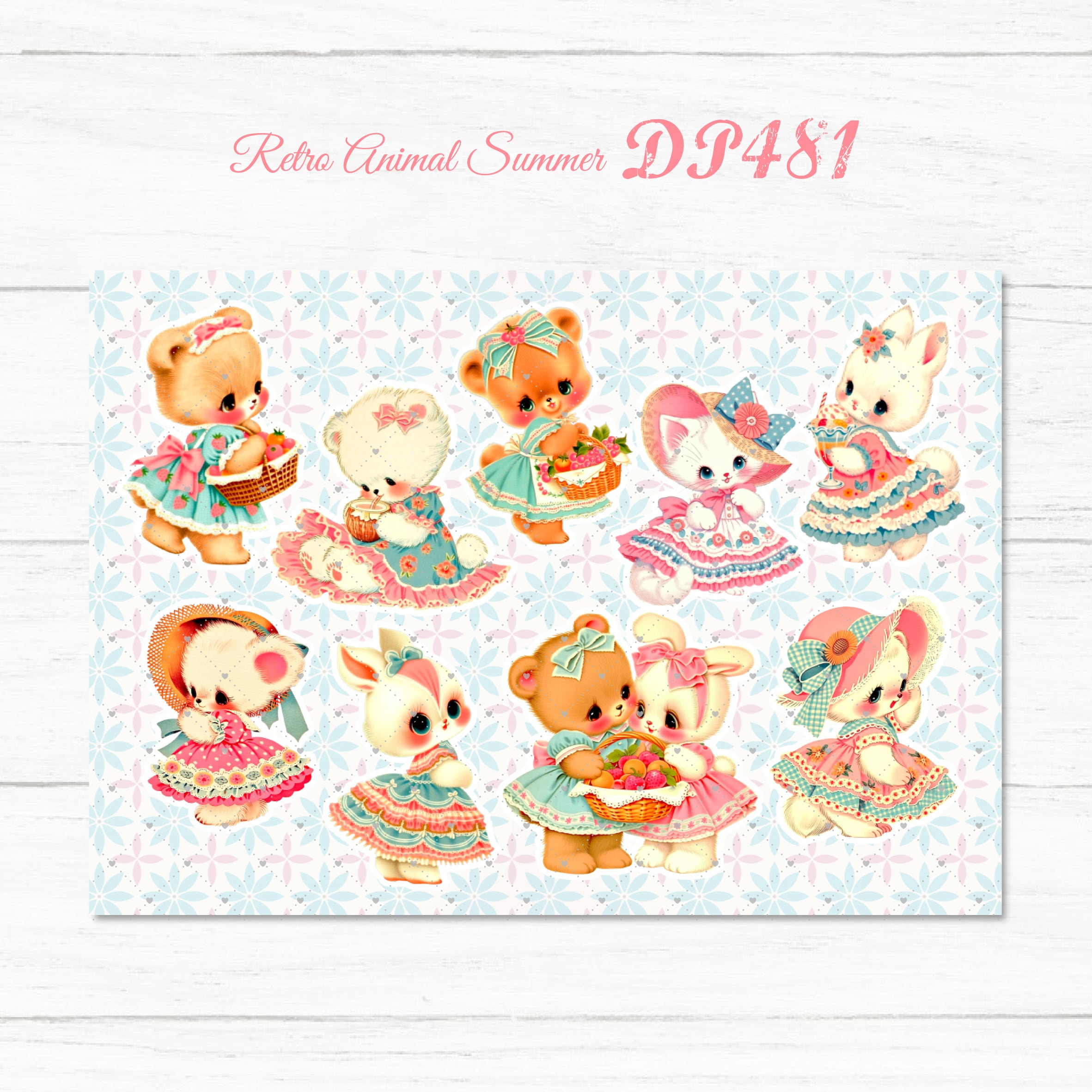 【DP481】デザインペーパー レトロ アニマル コラージュシート