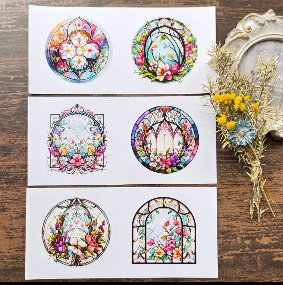 きれいなステンドグラスとフラワーの紙モノ素材です。