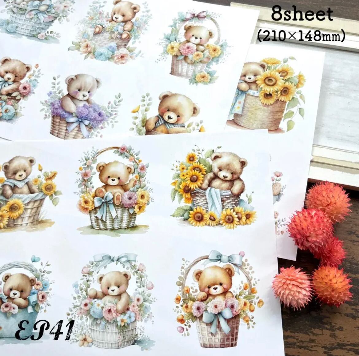 【EP41】コラージュ素材 フローラルバスケットベアー セルフカット/48パーツ