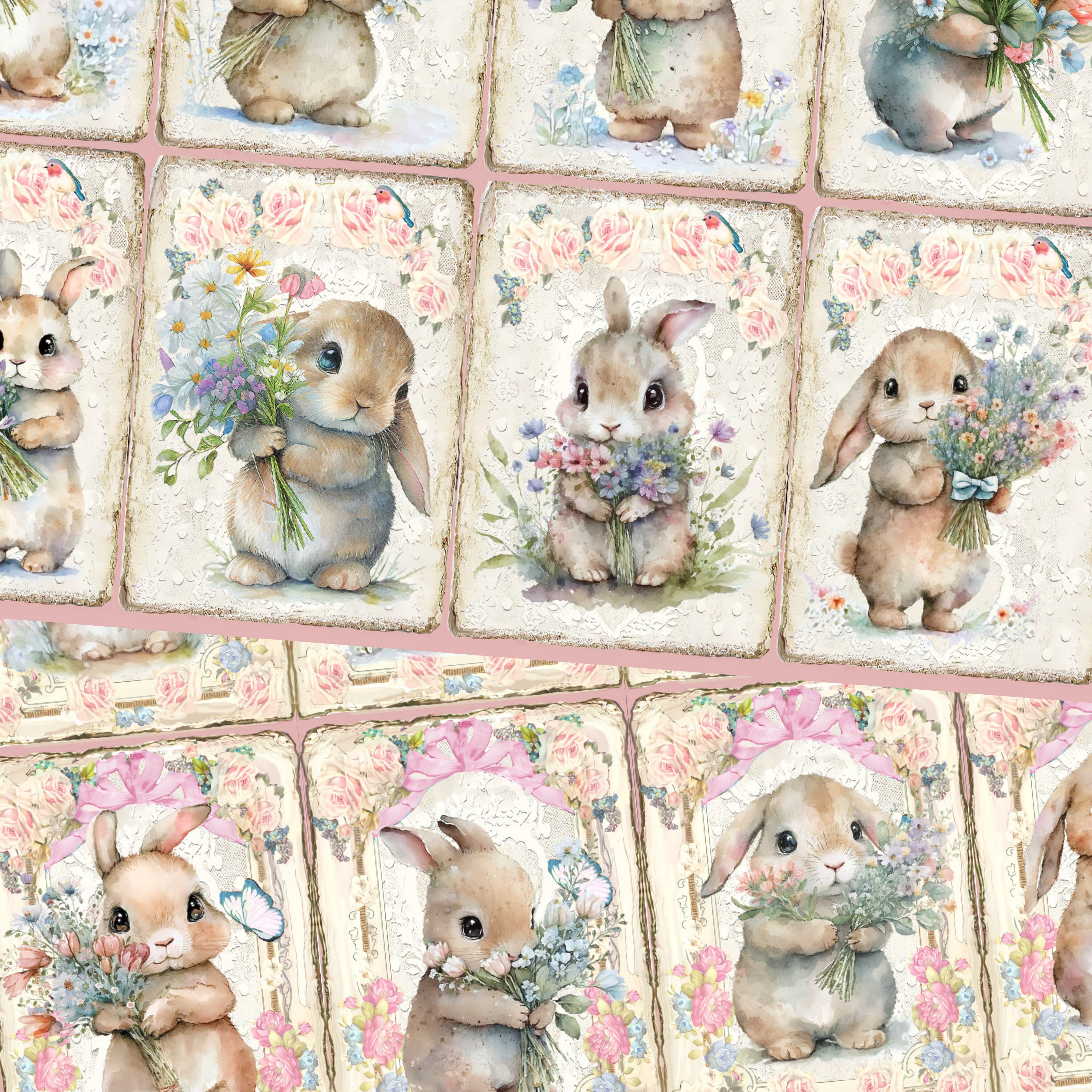 フローラルなうさぎがかわいいA4サイズのデザインペーパーです。