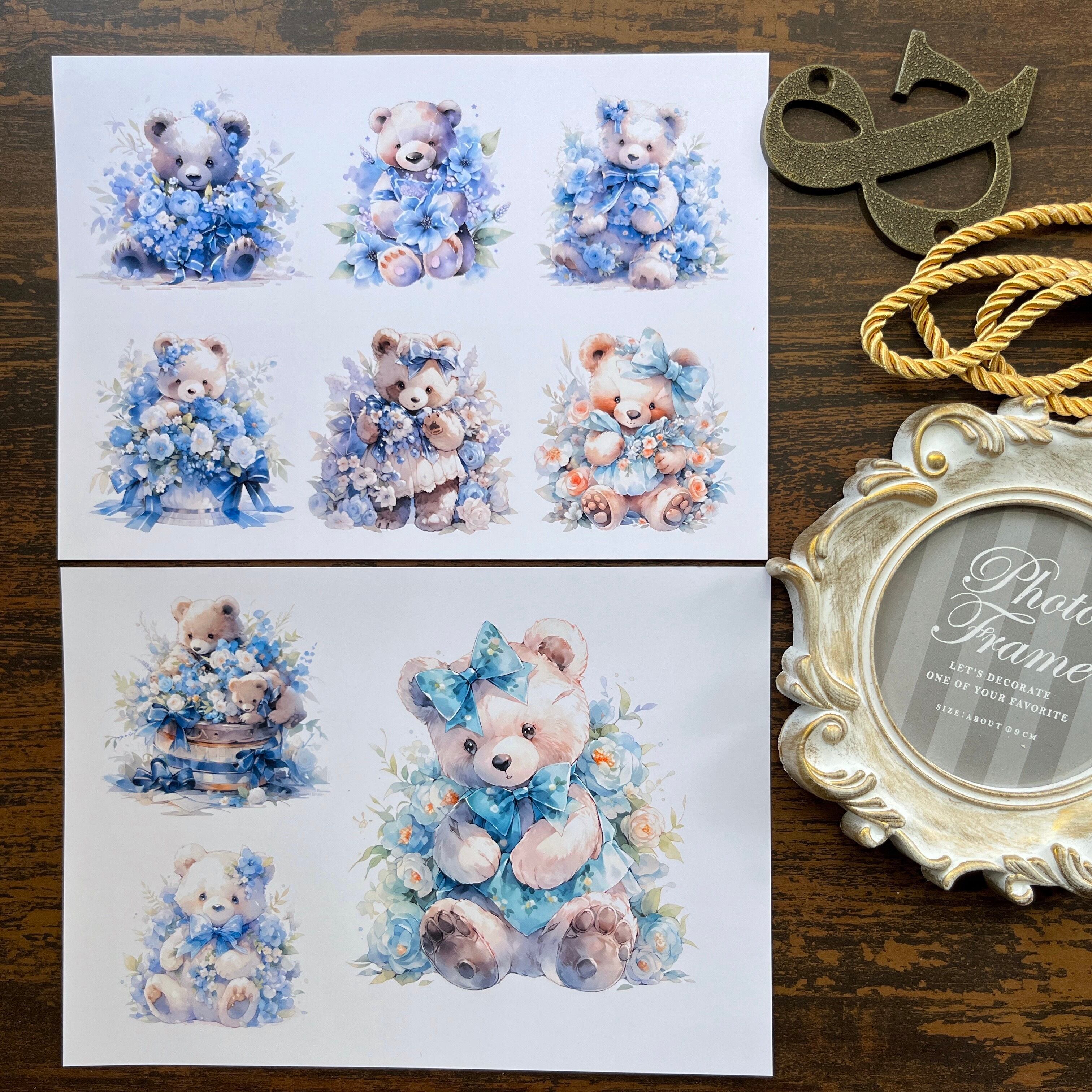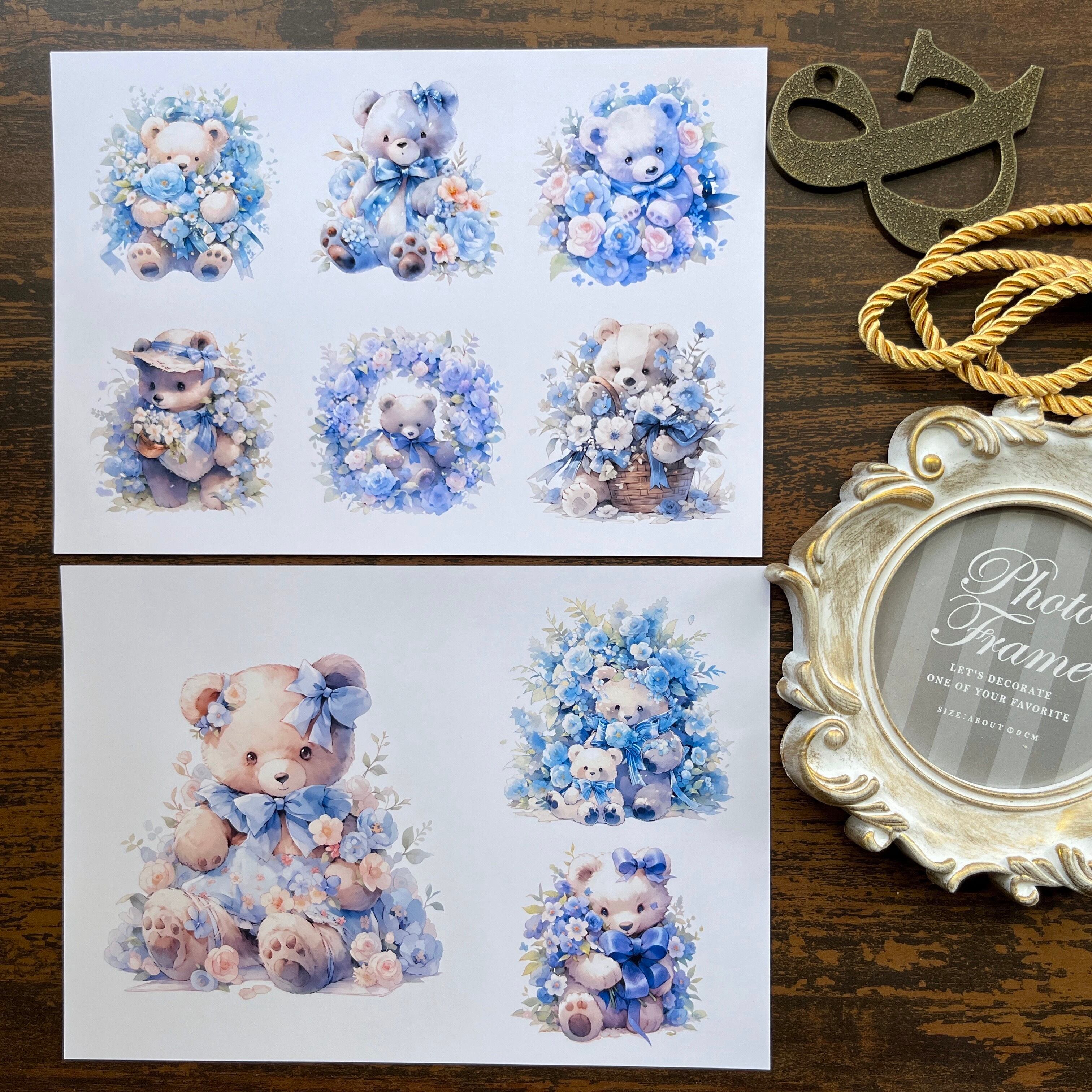 コラージュ素材 ブルーフローラルベアー セルフカット/36パーツ【EP58】
