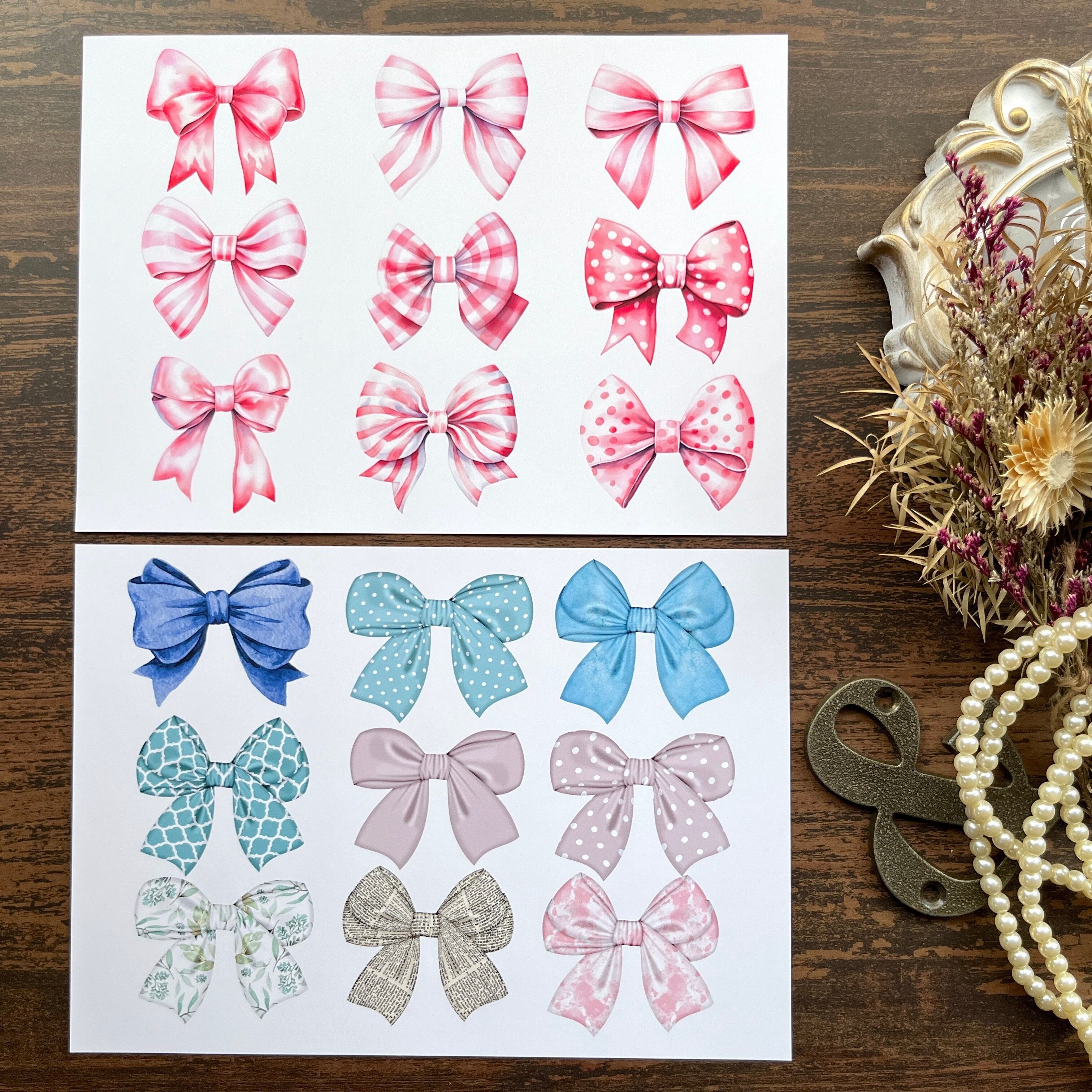 indigo_mg オリジナル編集 可愛いリボンの紙モノ素材です。セルフカットでコラージュ素材としてお使いください。