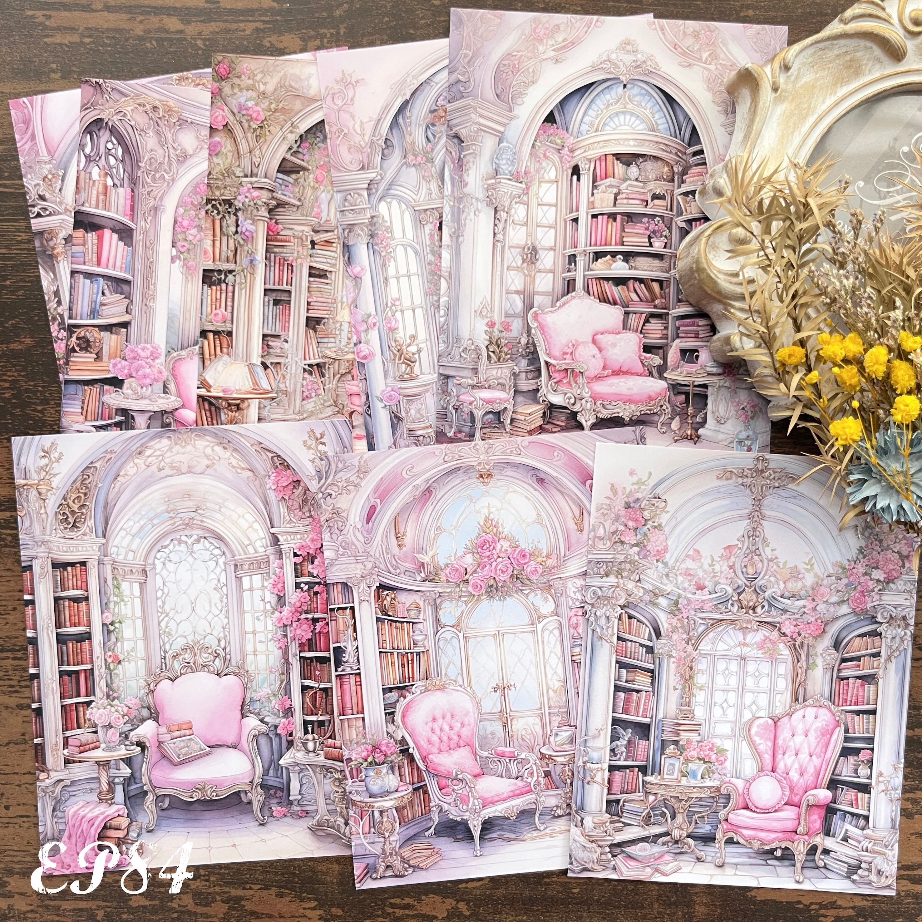 ピンク系のBOOKライブラリーの紙モノ素材です。