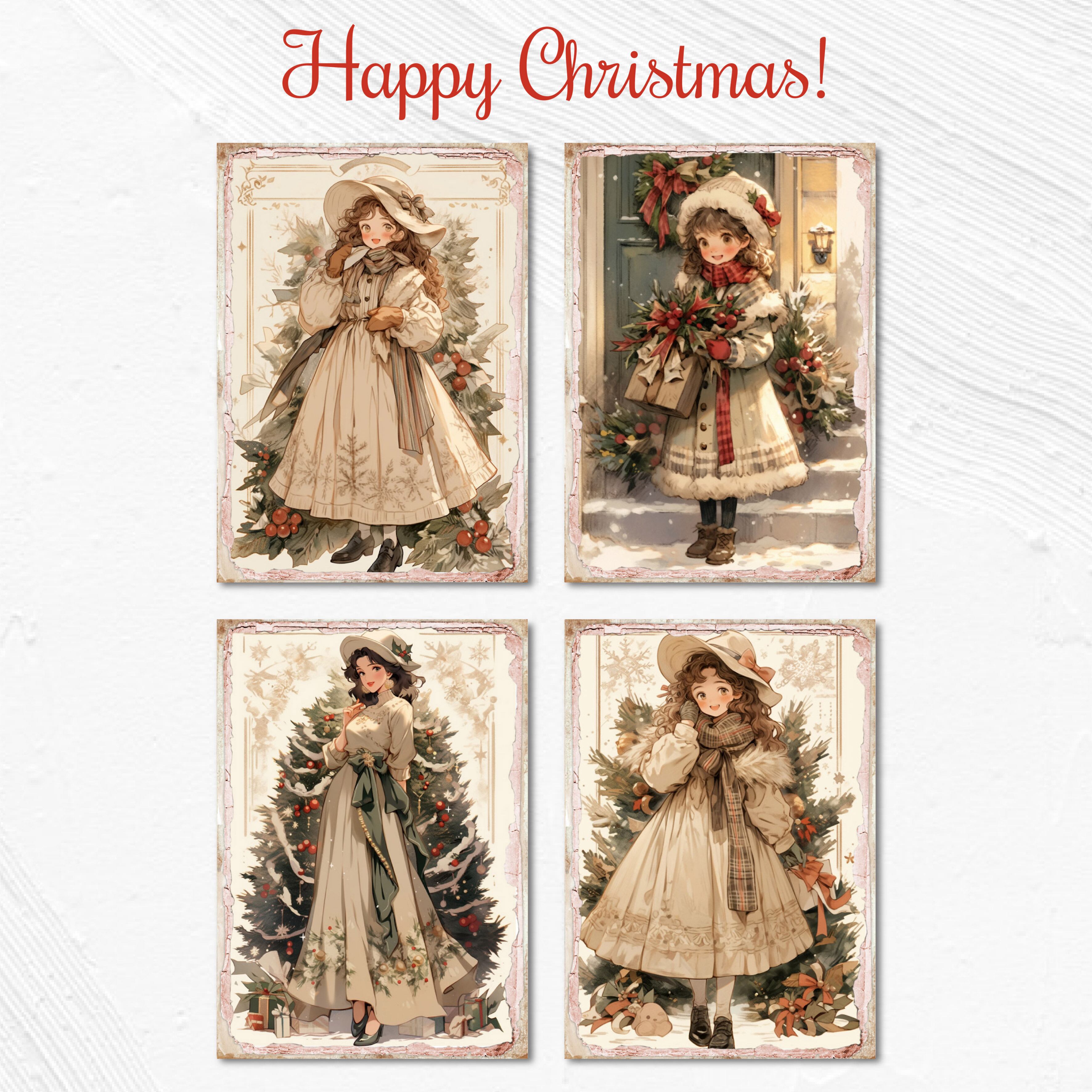 ヴィンテージ風のヴィクトリアンクリスマスガールの紙モノ素材です。