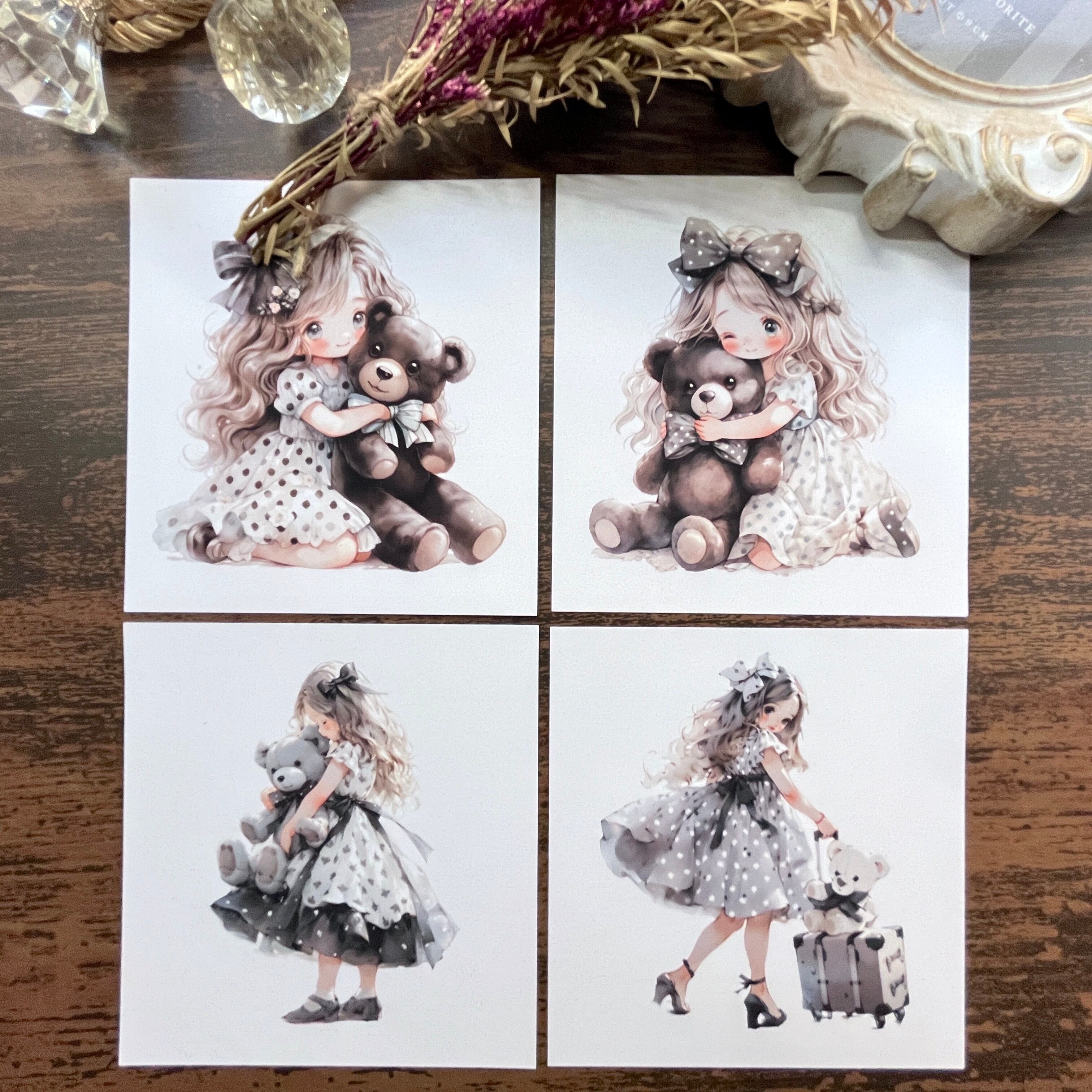 【EP111】コラージュ素材 モノトーン少女とテディベア メモ