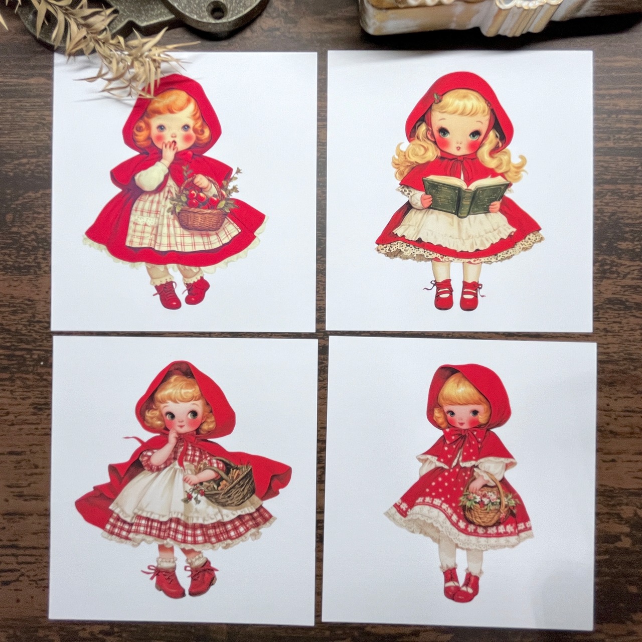 【EP145】コラージュ素材 赤ずきんちゃん風女の子 メモ デザインペーパー