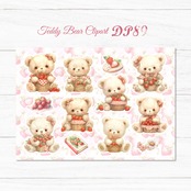 ストロベリーバスケットを抱っこしたテディベアがかわいいコラージュシートです♡