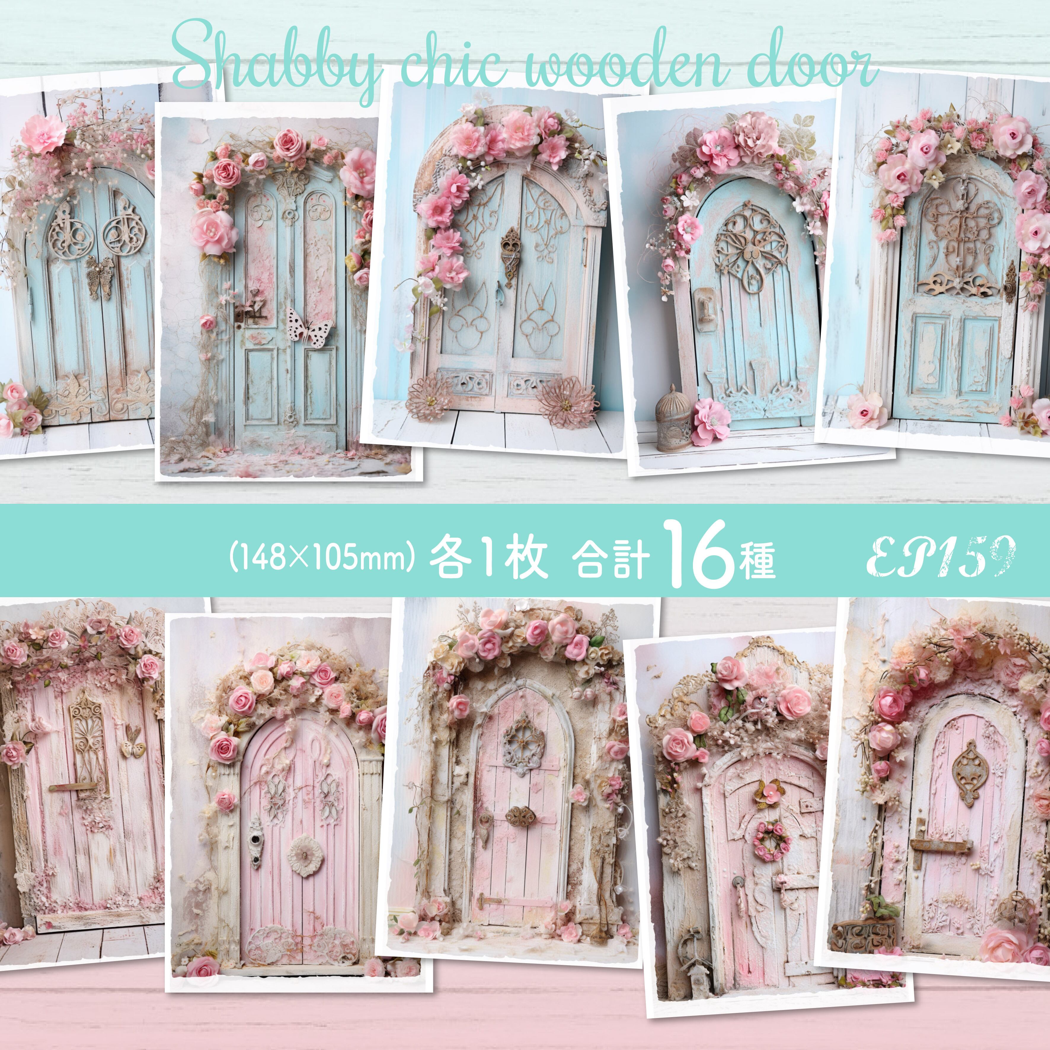 【EP159】コラージュ素材 フローラル シャビーシックドア