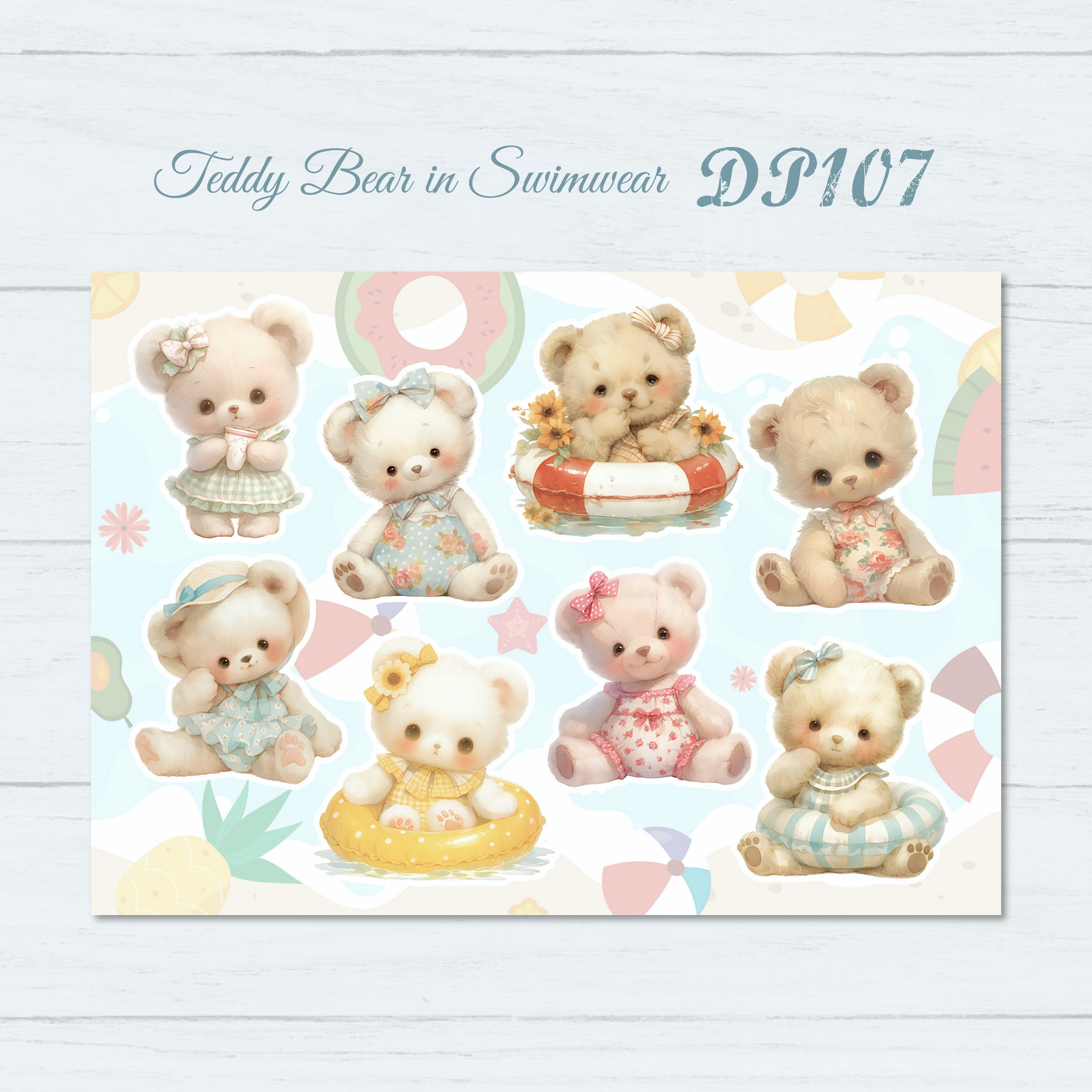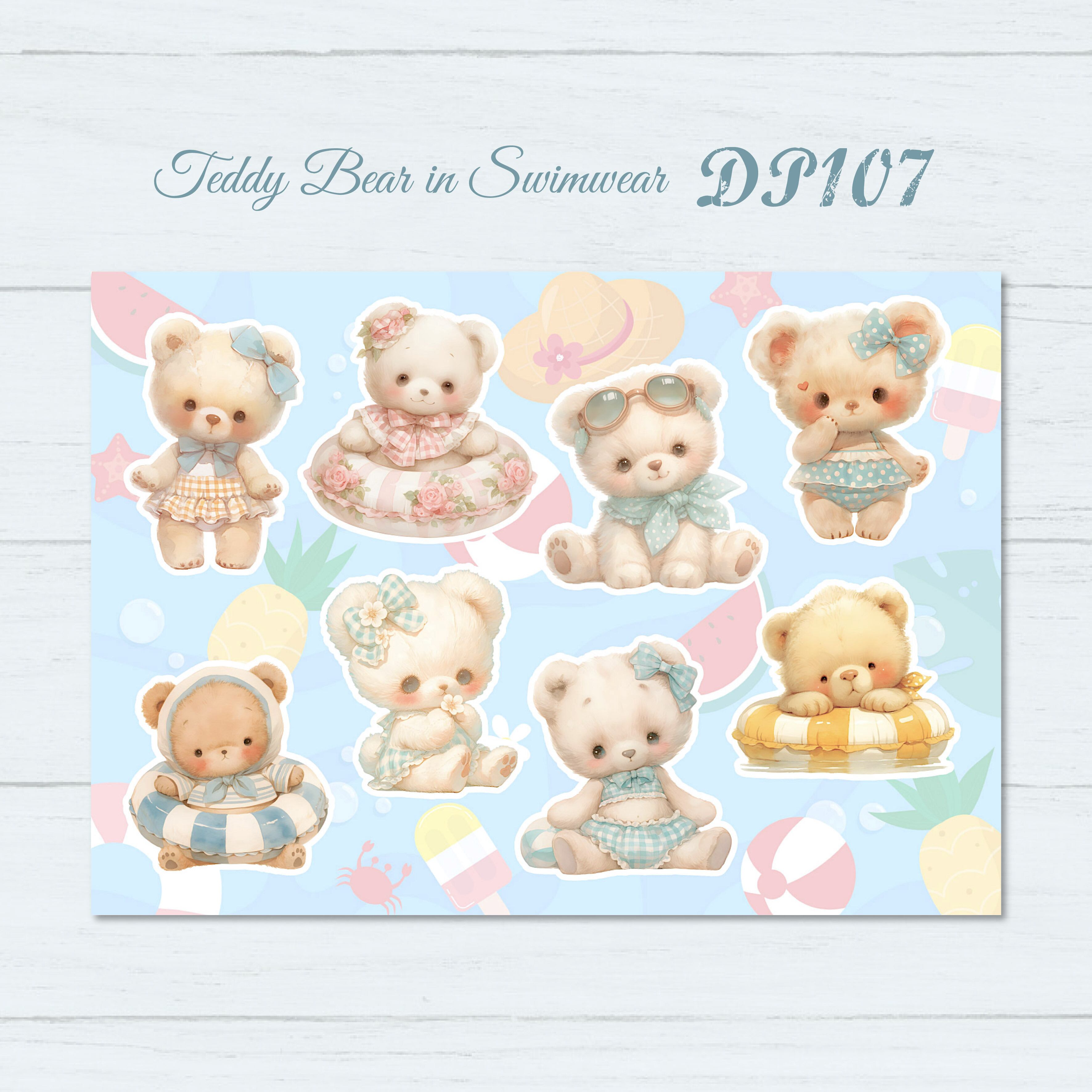 【DP107】デザインペーパー テディベア サマー コラージュシート