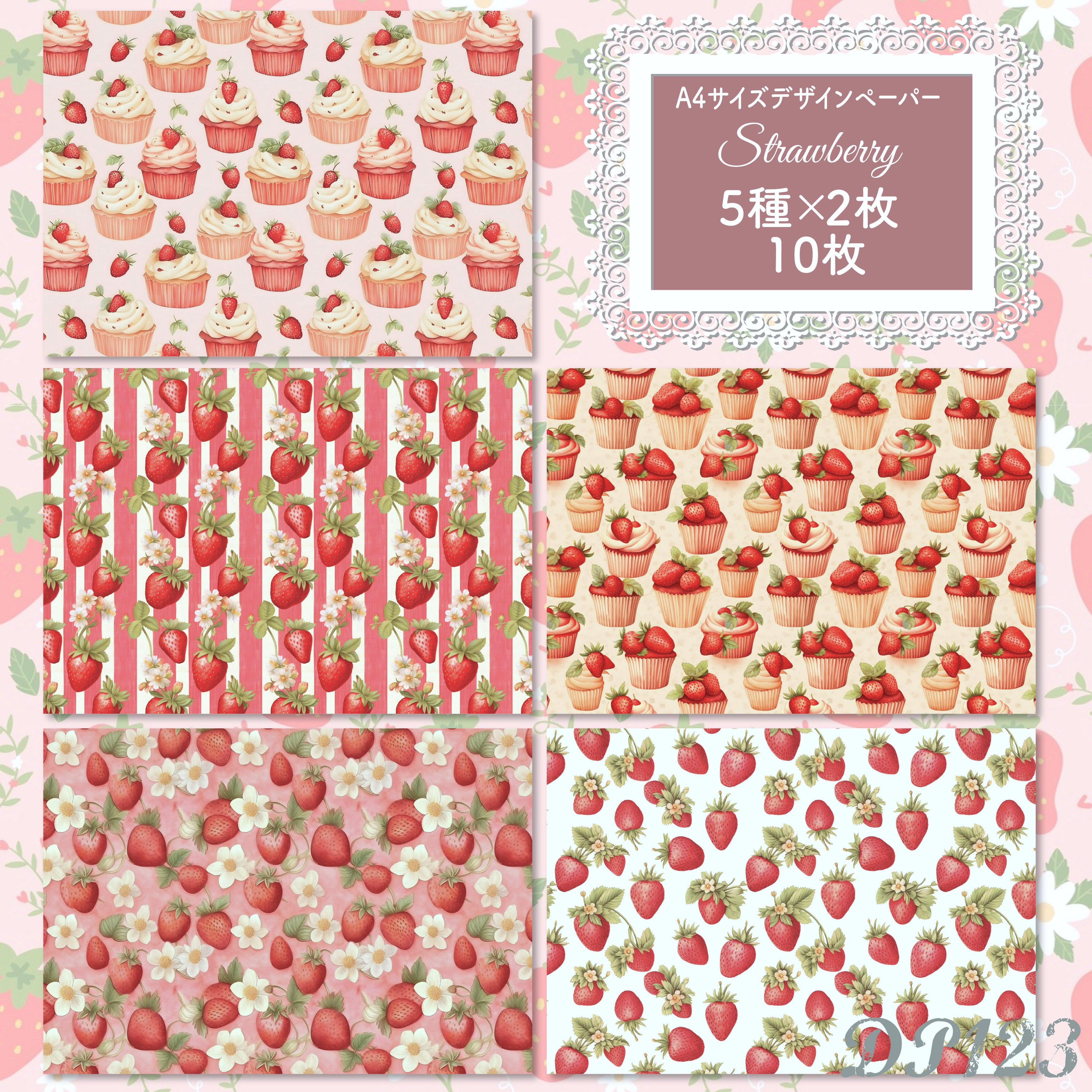 【DP123】デザインペーパー レトロ ストロベリー01 コラージュシート