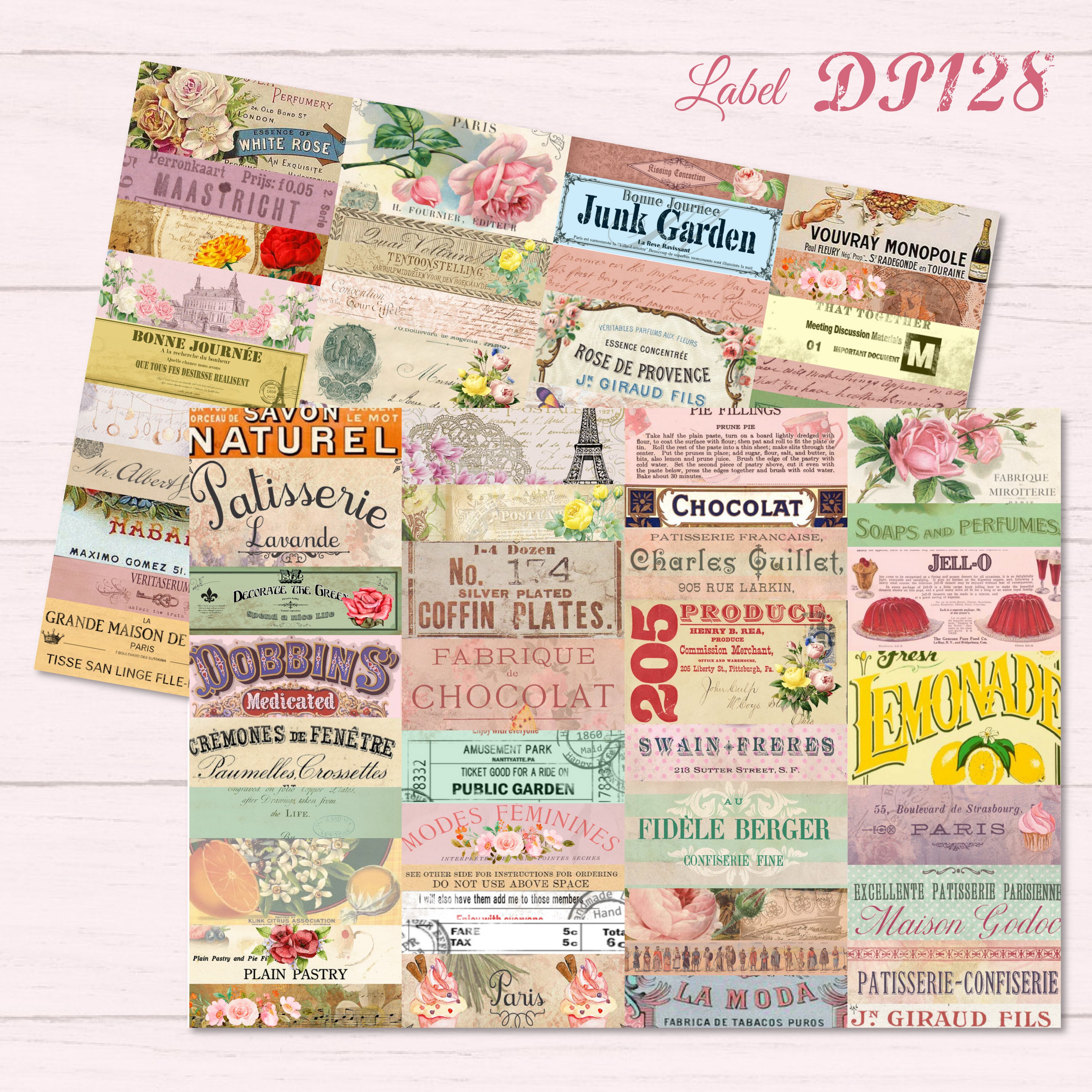 【DP128】デザインペーパー レトロ ラベル コラージュシート