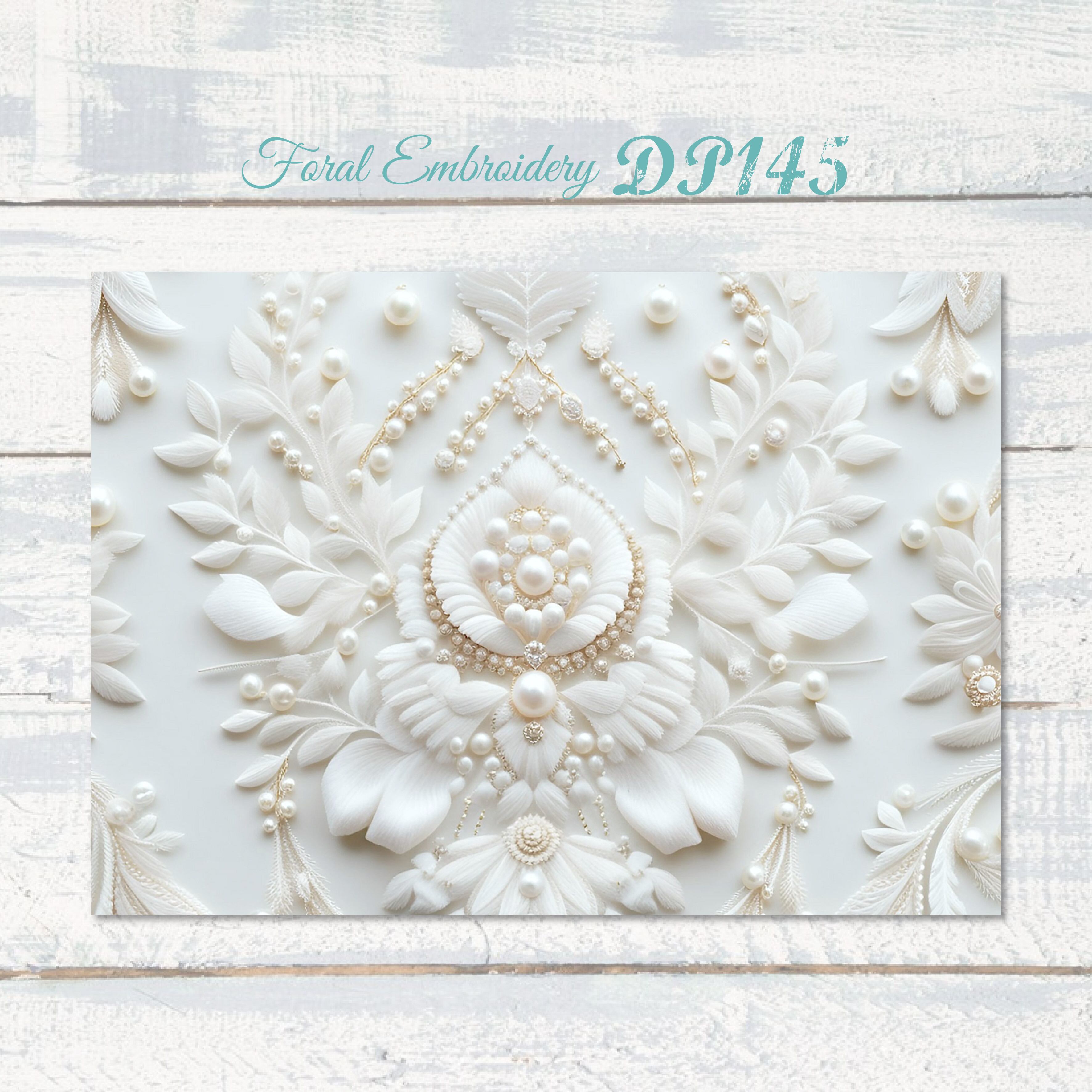 【DP145】デザインペーパー フローラル 刺繍 ホワイト コラージュ デザペ
