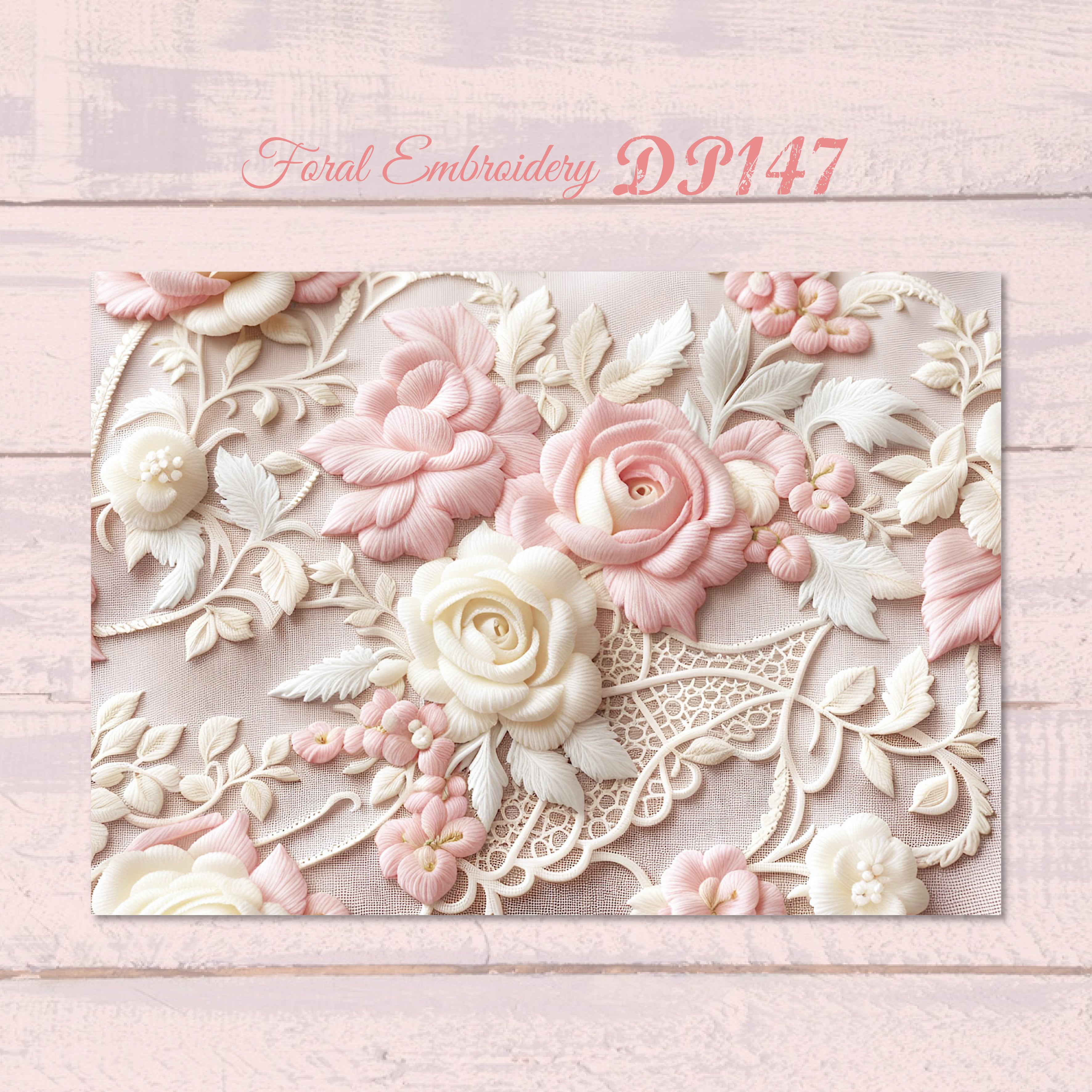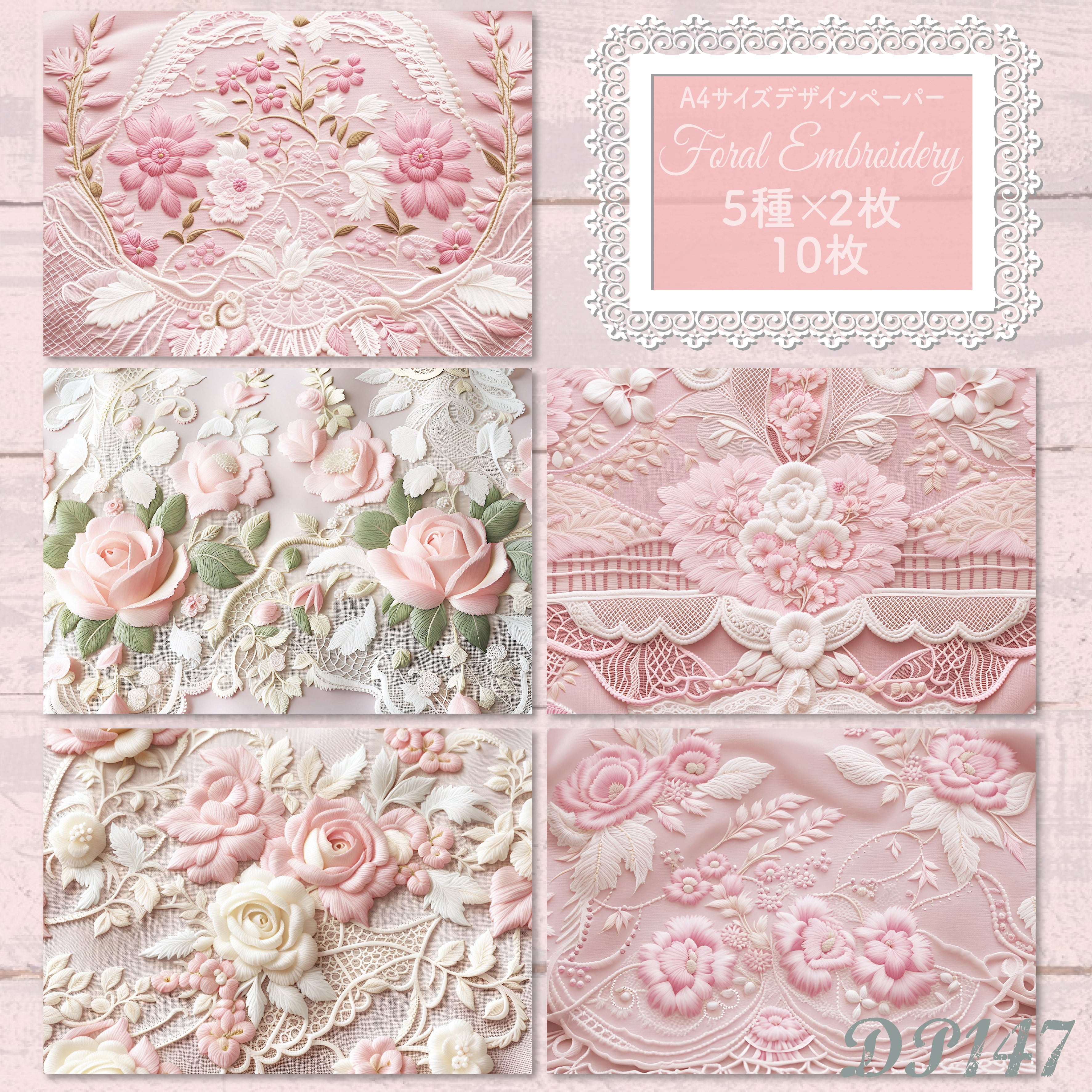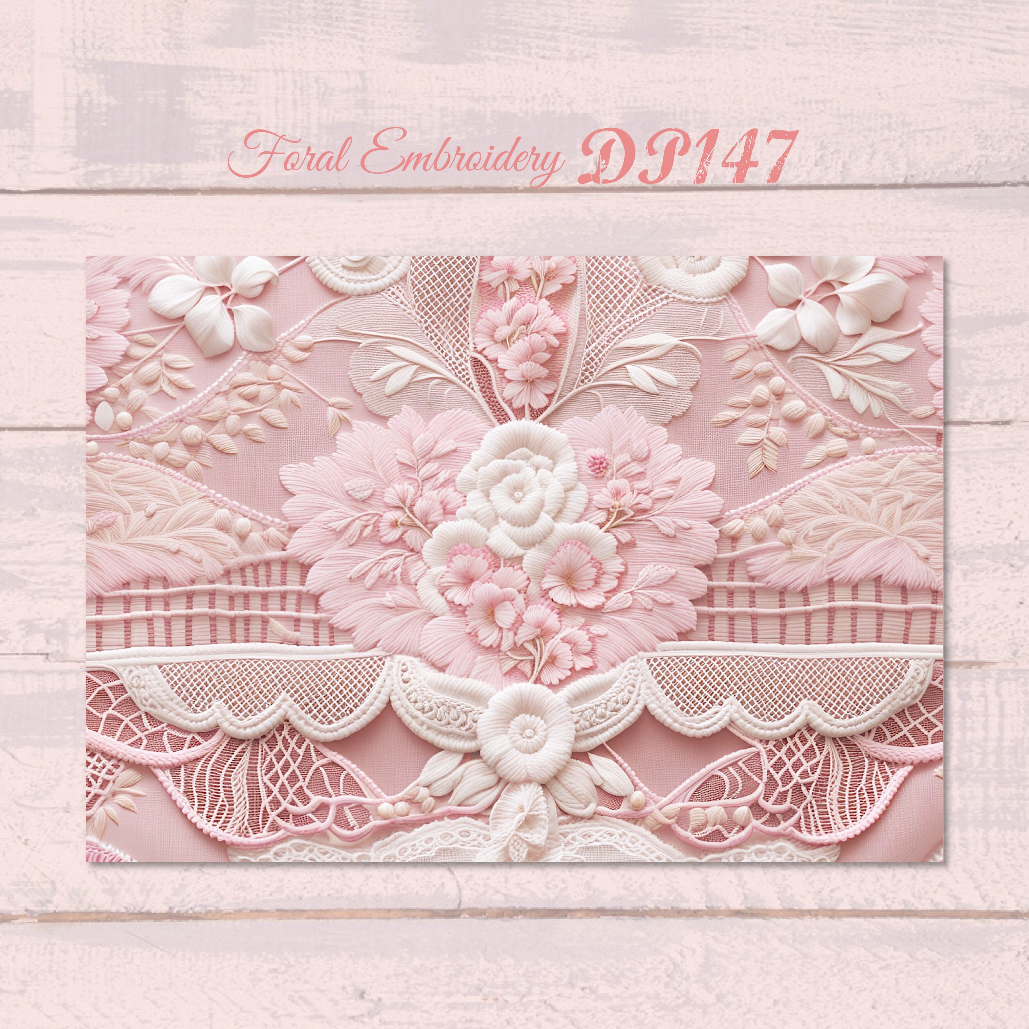 【DP147】デザインペーパー フローラル 刺繍 ピンク コラージュ デザペ