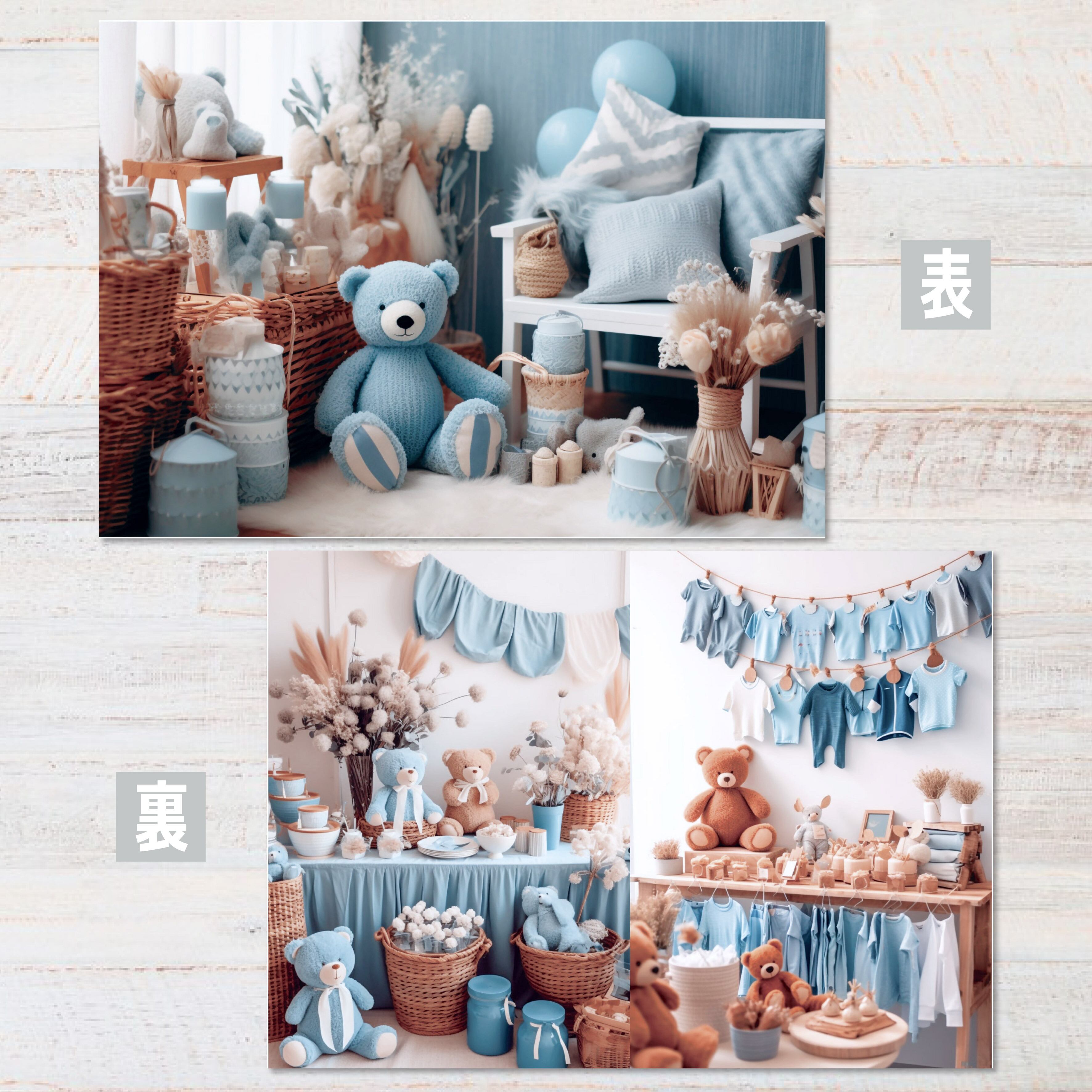 【OP63】デザインペーパー ブルー パーティーベア 3種×10枚