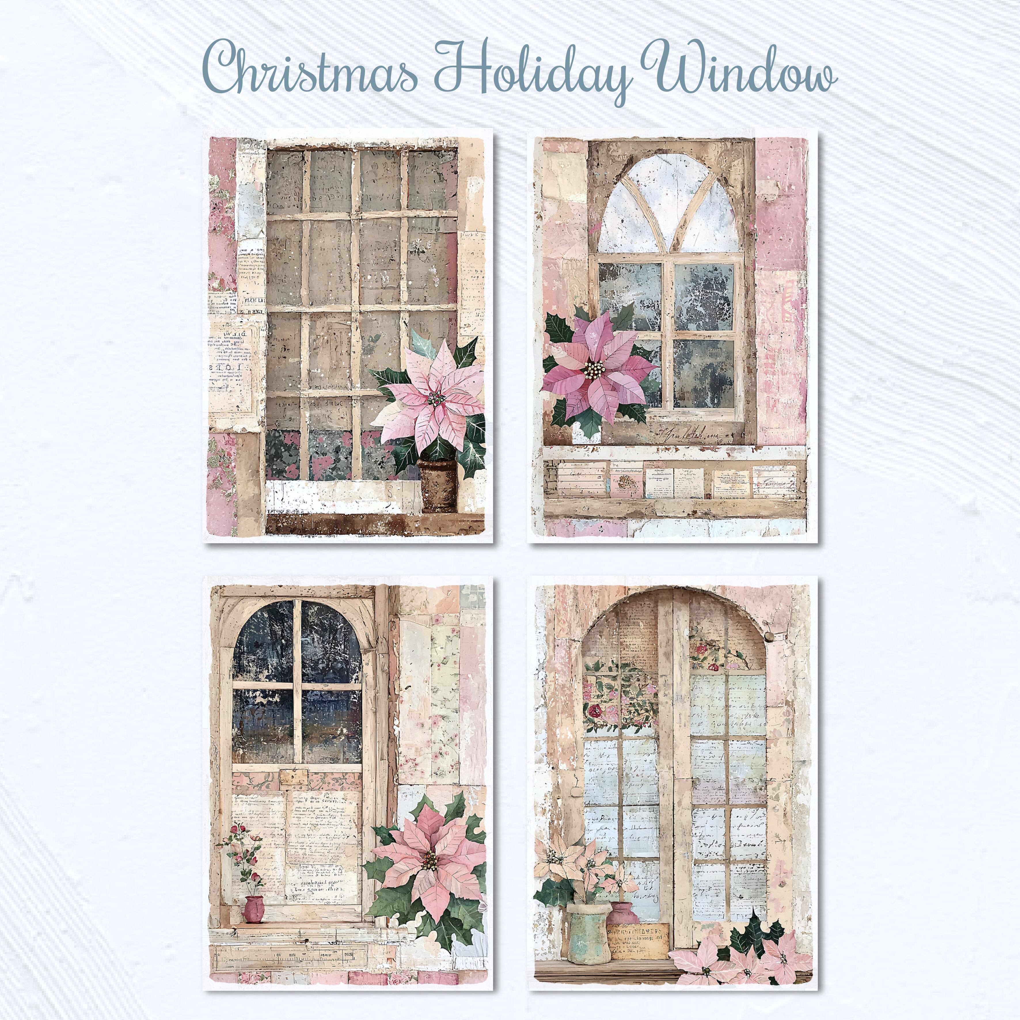 【EP186】コラージュ素材 ウィンドウ ポインセチア コラージュ メモ
