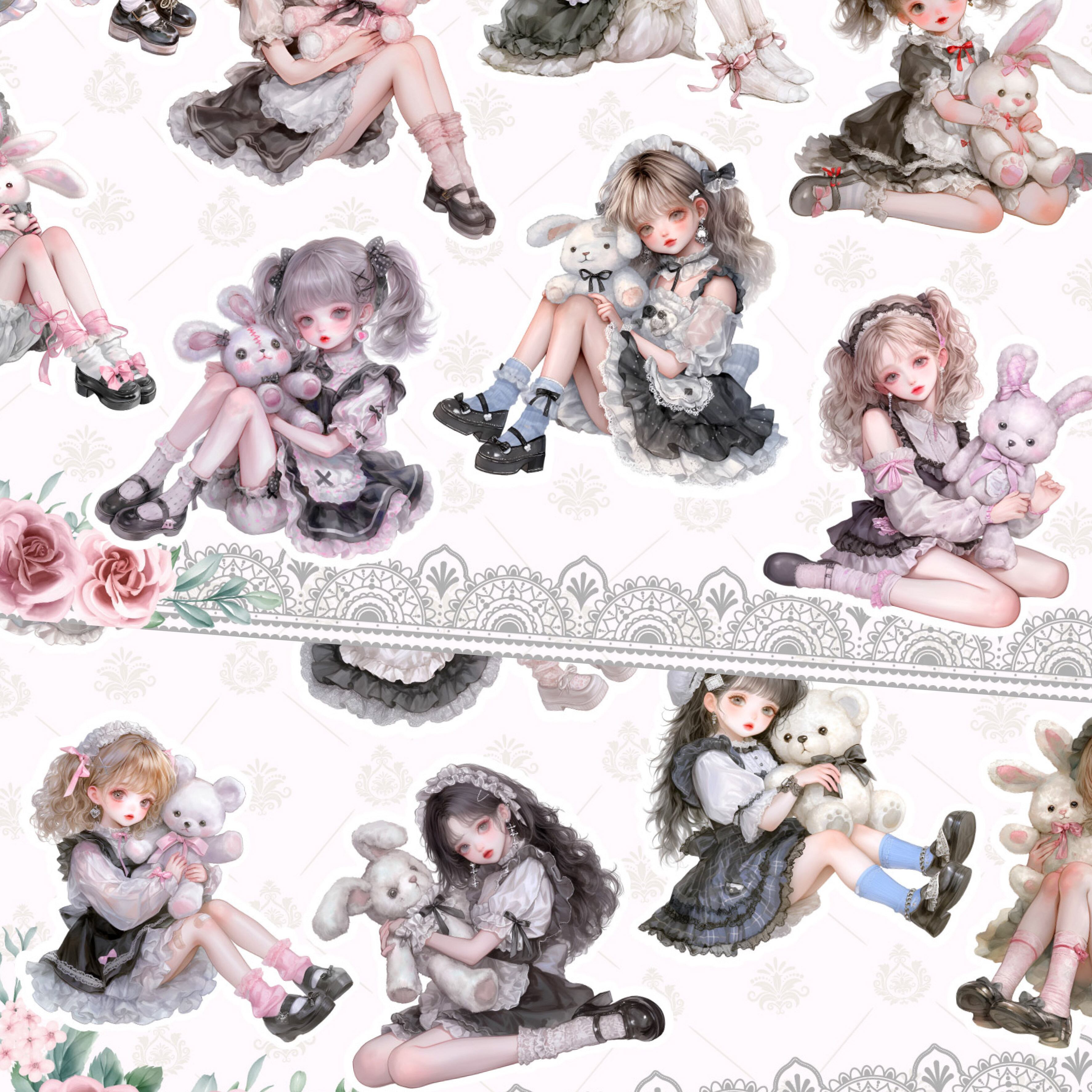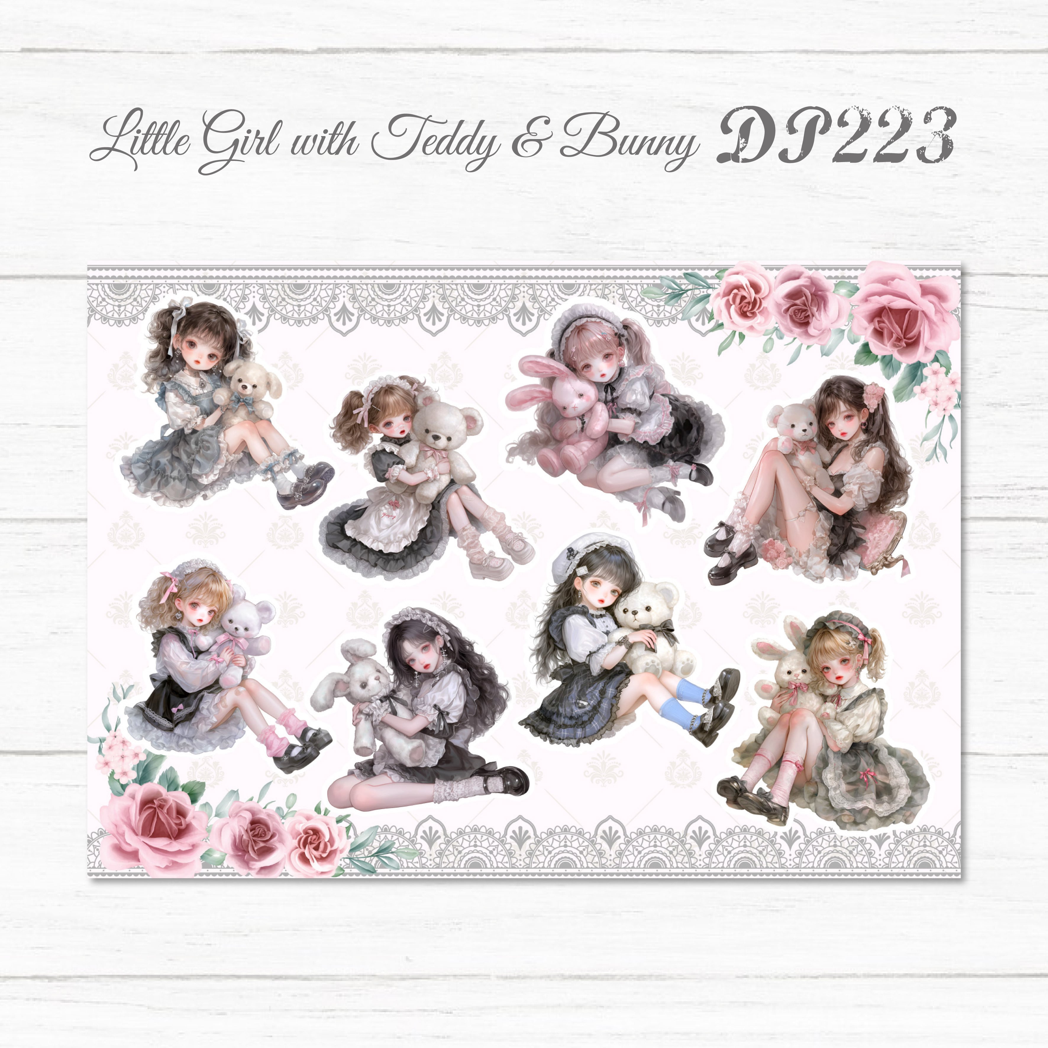 かわいいテディベア・バニーと少女のコラージュシートです♡
