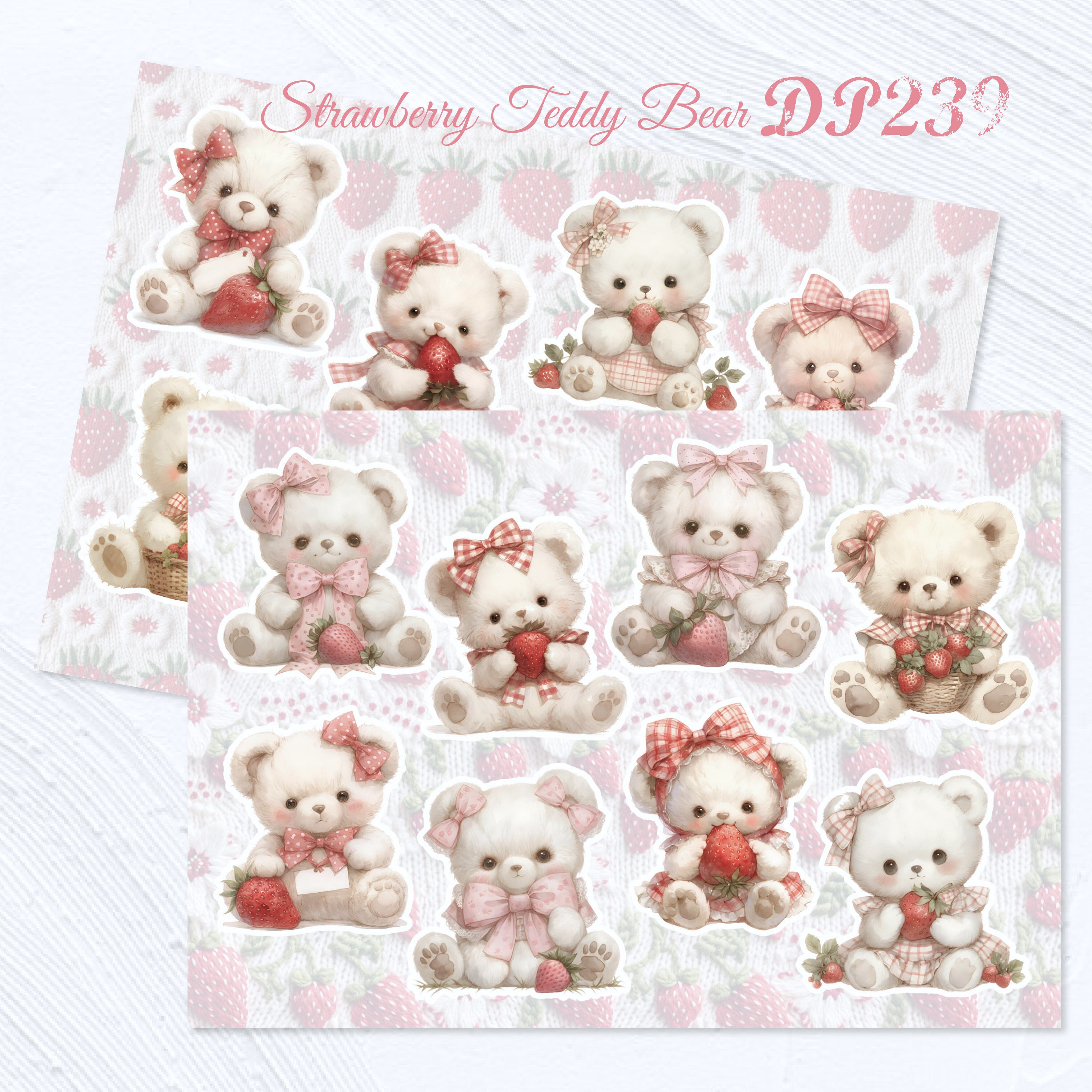 【DP239】デザインペーパー いちご テディベア コラージュシート